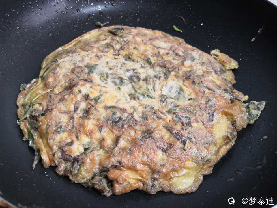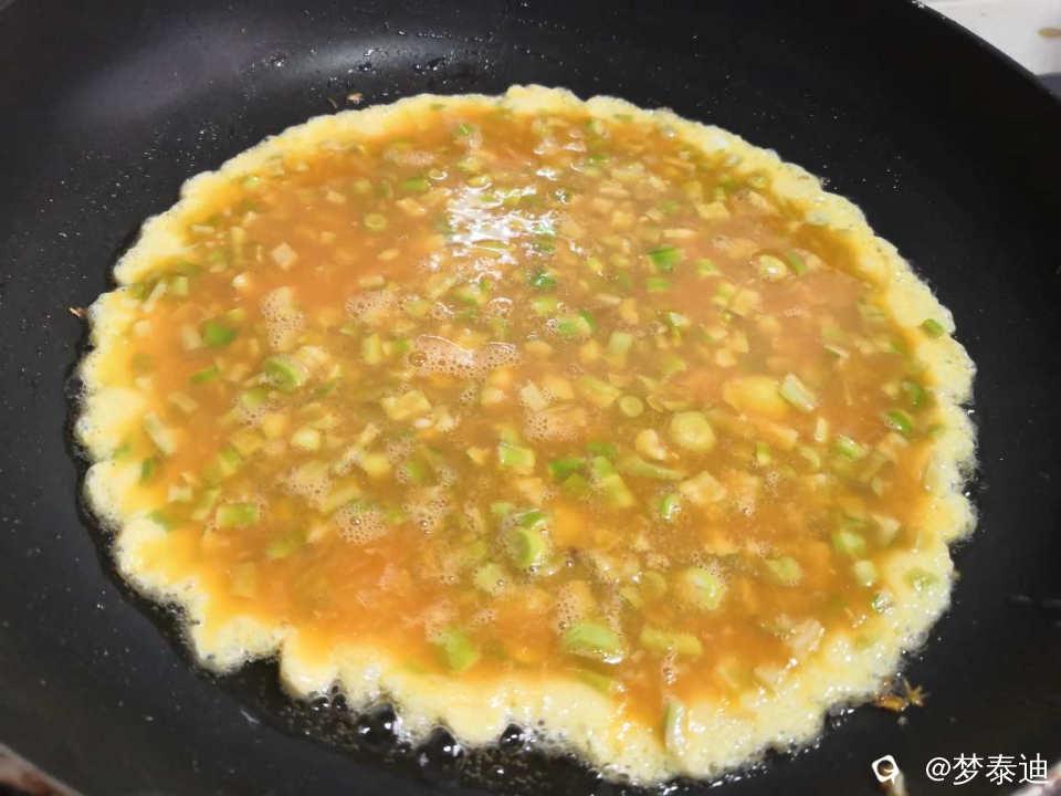 中小火煎蛋饼,翻面后即可出锅。