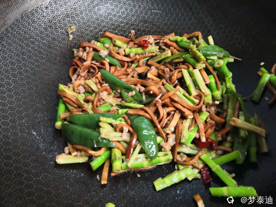 准备肉沫与姜蒜末一起炒,放入焯水后滤干水份的雷公菌翻炒,放入食盐,生抽等调味即可出锅。雷公菌也是春天雨后才有的天赐美味,你今年品尝了吗?