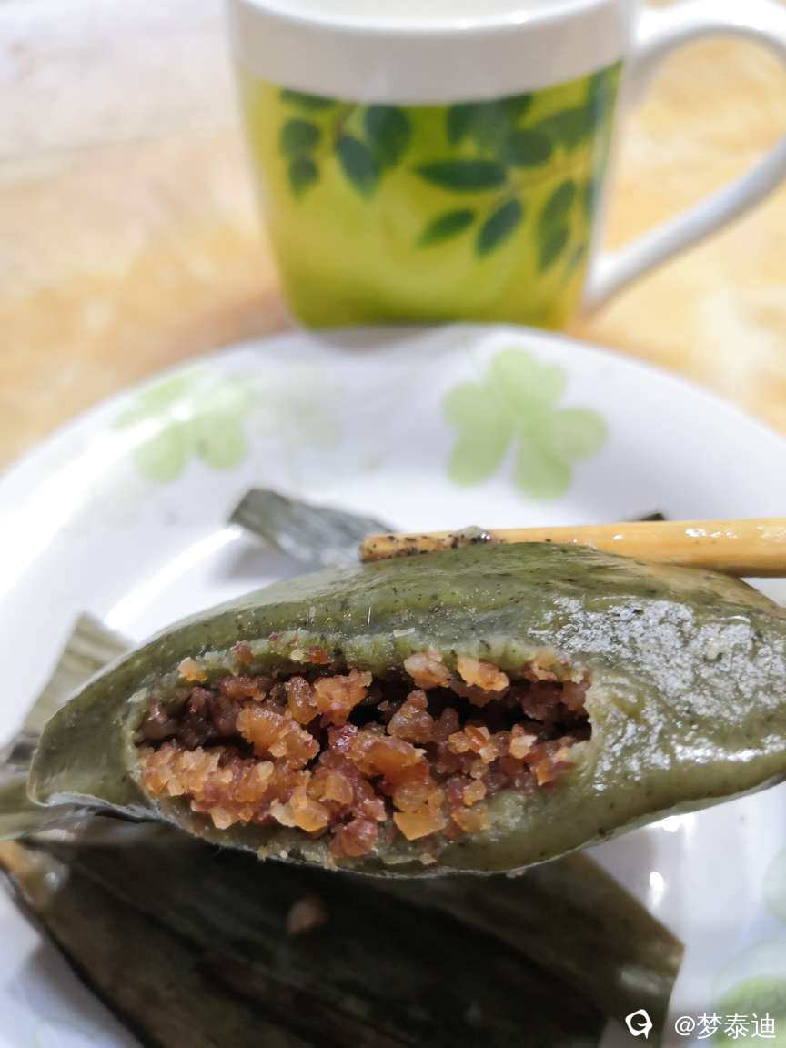 也有人喜欢把艾叶粑做头菜肉沫馅口味的。