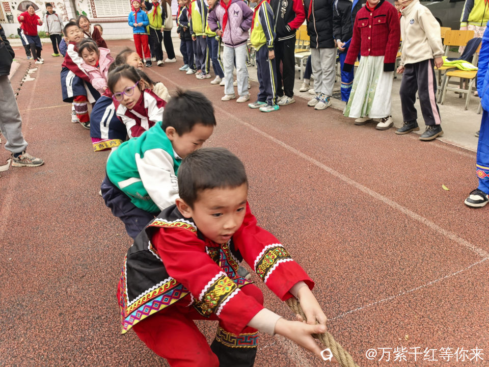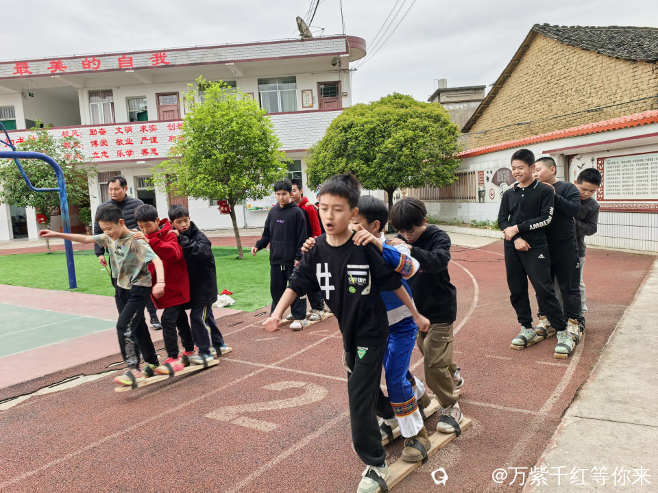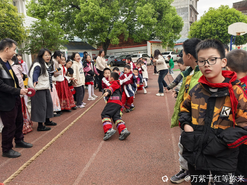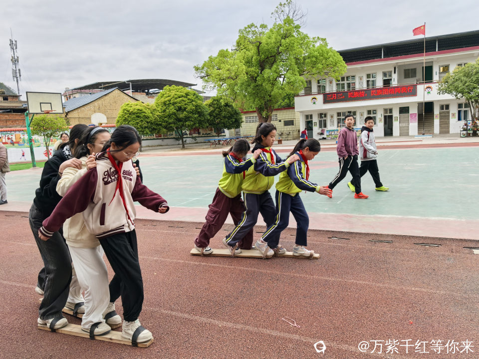 最让人期待的就是体育民族竞技了,操场上,同学们穿着精美的民族服装,正在进行各色各样的传统体育项目比赛。如板鞋竞速、竹竿舞、抛锈球、拔河等,生动有趣的活动,不仅丰富了学生的课外知识,还锻炼了身体。