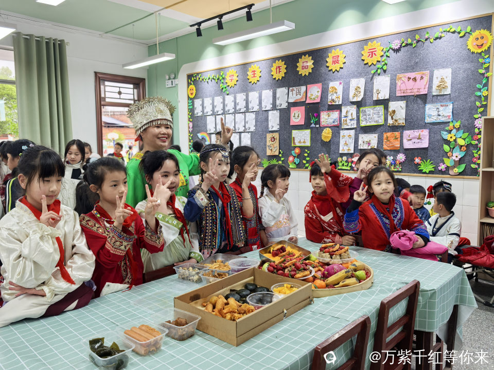 这么多美食,看把孩子们馋的,瞧他们吃得多开心呀!这种融洽快乐的氛围,更能促进他们同学之间的和谐相处。