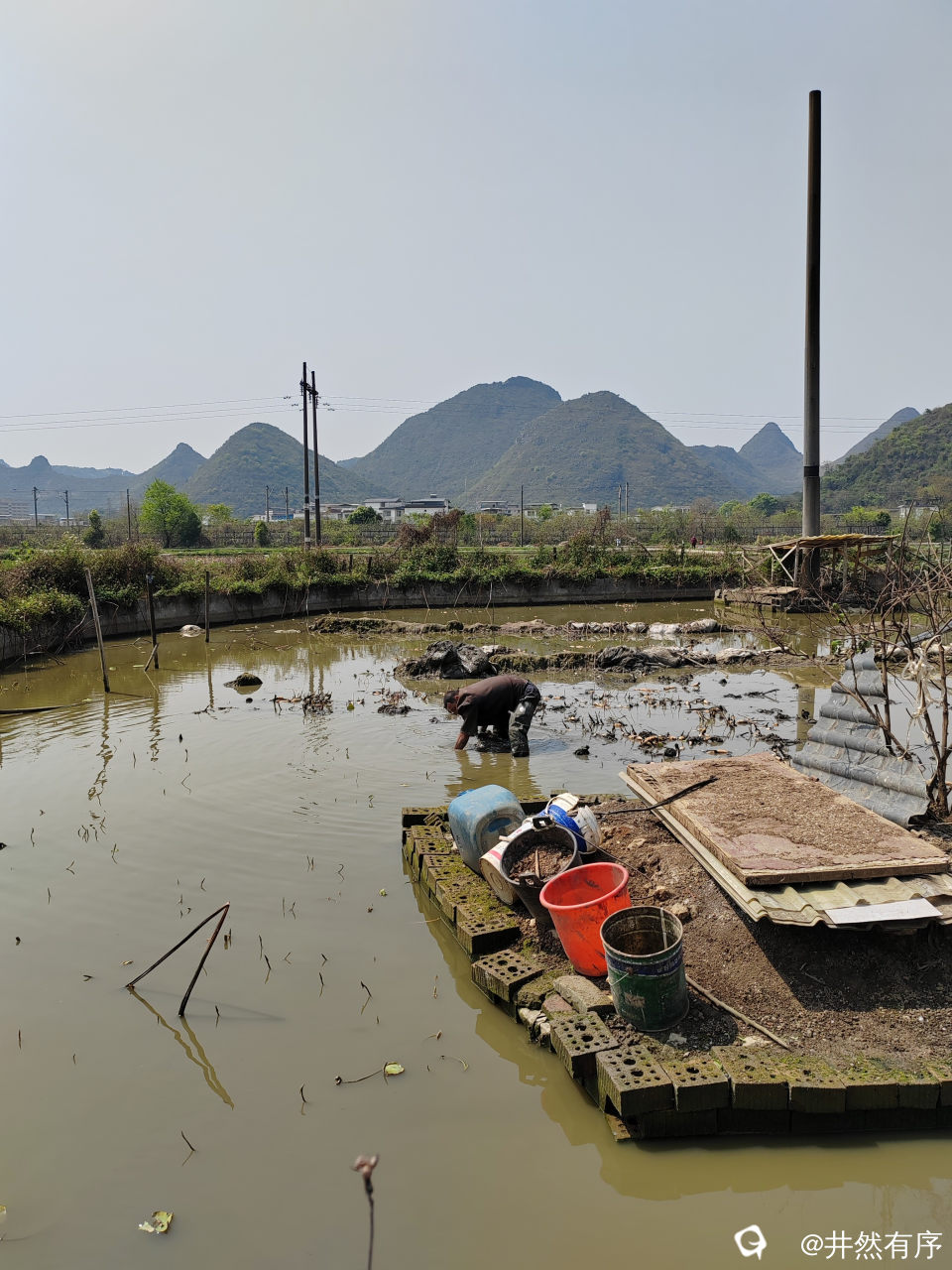 这里还有挖机在作业,藕田改造成鱼塘。