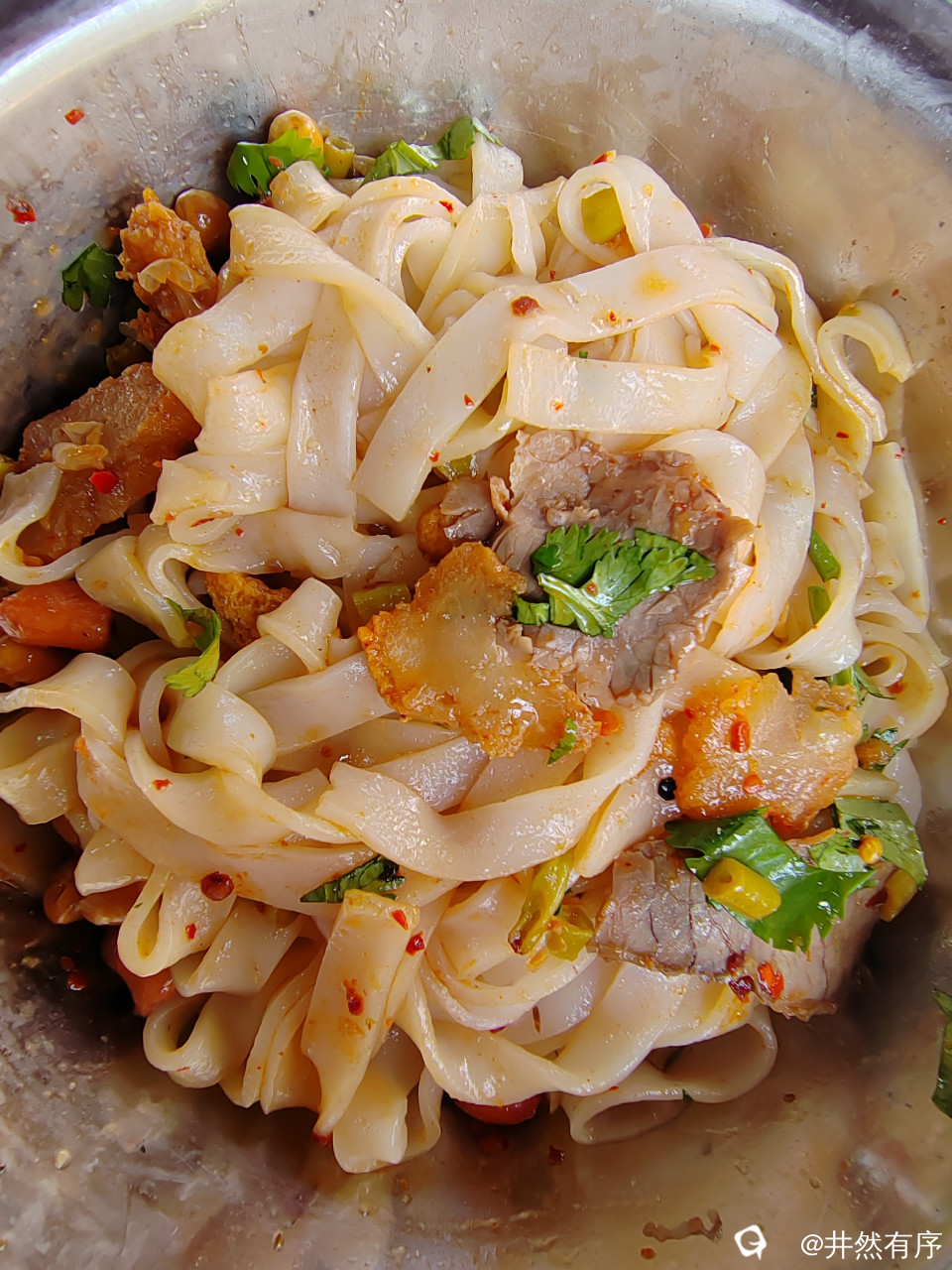 首先把米粉拌匀,充分的吸裹卤水和佐料后,慢慢品尝,我喜欢要旁边的锅烧,香脆不腻,酸豆角也是细咪咪的我喜欢。