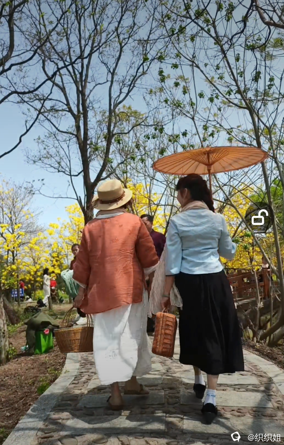 我们举手机拍摄时,她回眸轻笑,我主动问:“能入镜吗?”于是,一见如故,俩人同框,镜头记录下穿越时空的欢笑。