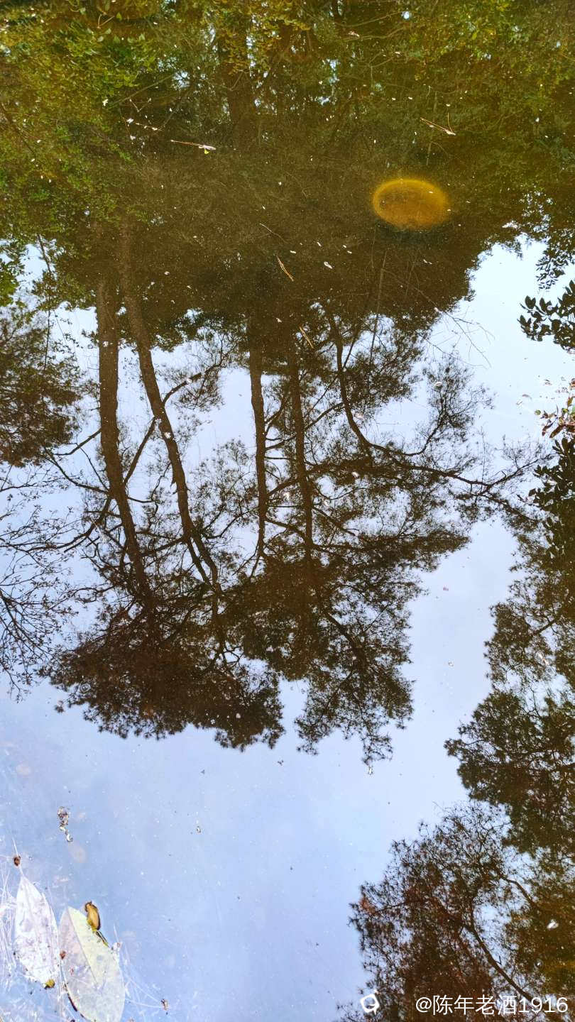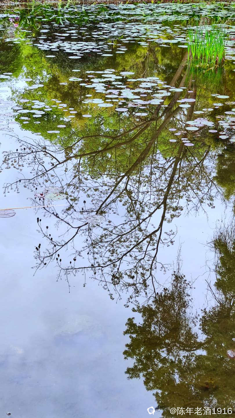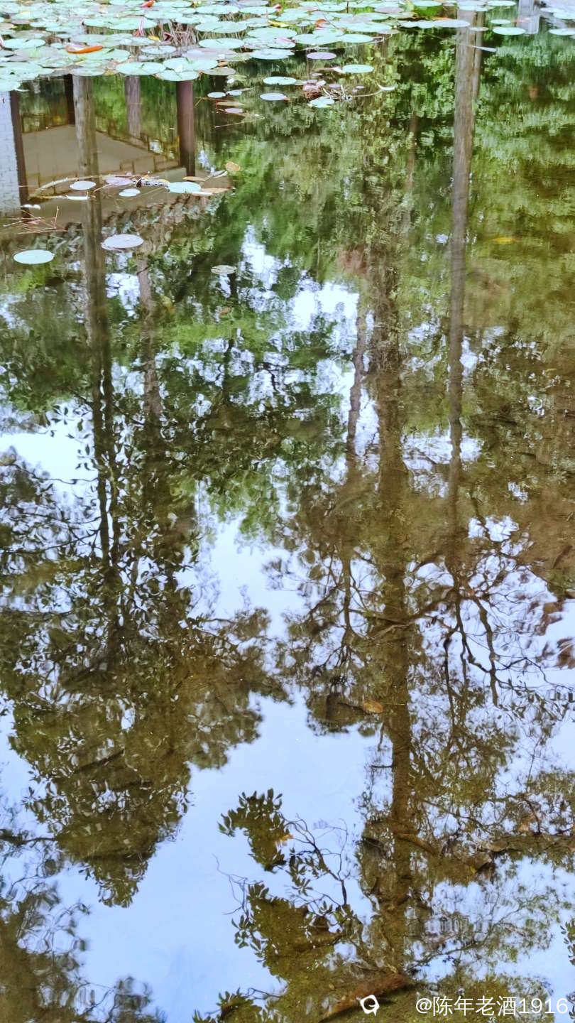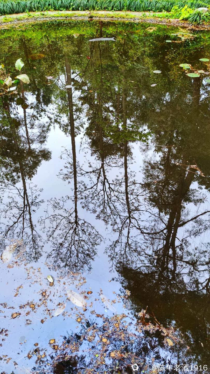 目之所及皆是风光,都说偶尔抬头望望就会有意想不到的好风光,而在这里,低头看看一汪池水,也会收获五彩斑斓的好风光。水面飘浮着绿色的睡莲叶和金黄色的落叶,与水平如镜的树林倒影,构成一幅幅色彩斑斓的油画和水彩画。