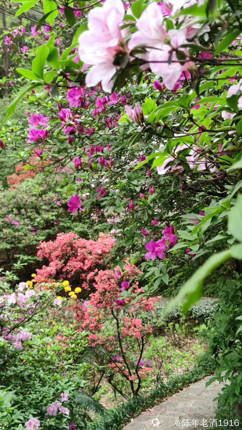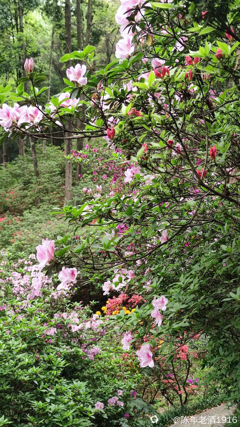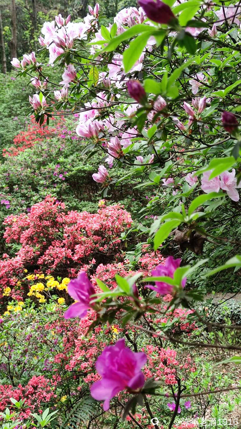 不知逛了多久,不知不觉来到了心心念念的杜鹃园,这也是此次来的主要目的。尽管站在水池旁看到山坡上的杜鹃花,底下的开得稀稀拉拉,树上全是花苞,估计3-5也差不多了。山坡上面点的花开得比较旺盛,虽然还没有到盛开花期,但拍花已经足够,而且前来观赏的人不多,对拍花花来讲不存在人从众的困扰,挺好。走进山坡里面,五颜六色的杜鹃花甚为迷人,尤其是黄色的杜鹃花比较诱人,其次是白色的,这两个色系的花在整个园区都比较少见,所以我才显得有点“多怪”。