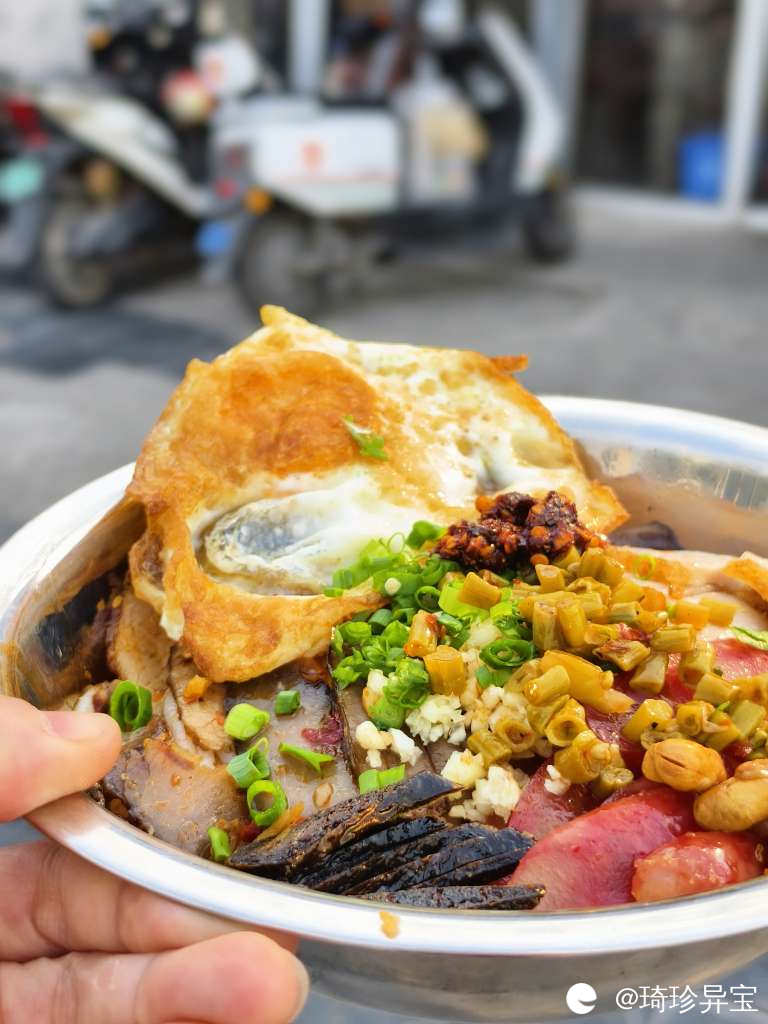 啤酒厂对面有一家旭鲜米粉,听说他们家的牛肉杠杠的,这是一家连锁米粉店,今天来试一下。本来就想普普通通的吃一碗卤菜粉,没想到周老板大气得很,请我吃了一碗16元的全家福卤粉,好奢侈。米粉上面满满当当铺的全是肉,基本上看不到粉。有锅烧,牛肉,叉烧,连田,肚子,香肠,还有煎蛋,太豪华了。卤水不错,卤牛肉果然真材实料,肚子也很好吃,可惜今天的锅烧不是很脆,小料有花生也有黄豆。免费的姜红糖甜酒水也很好喝,肉太多了,吃的有点撑。