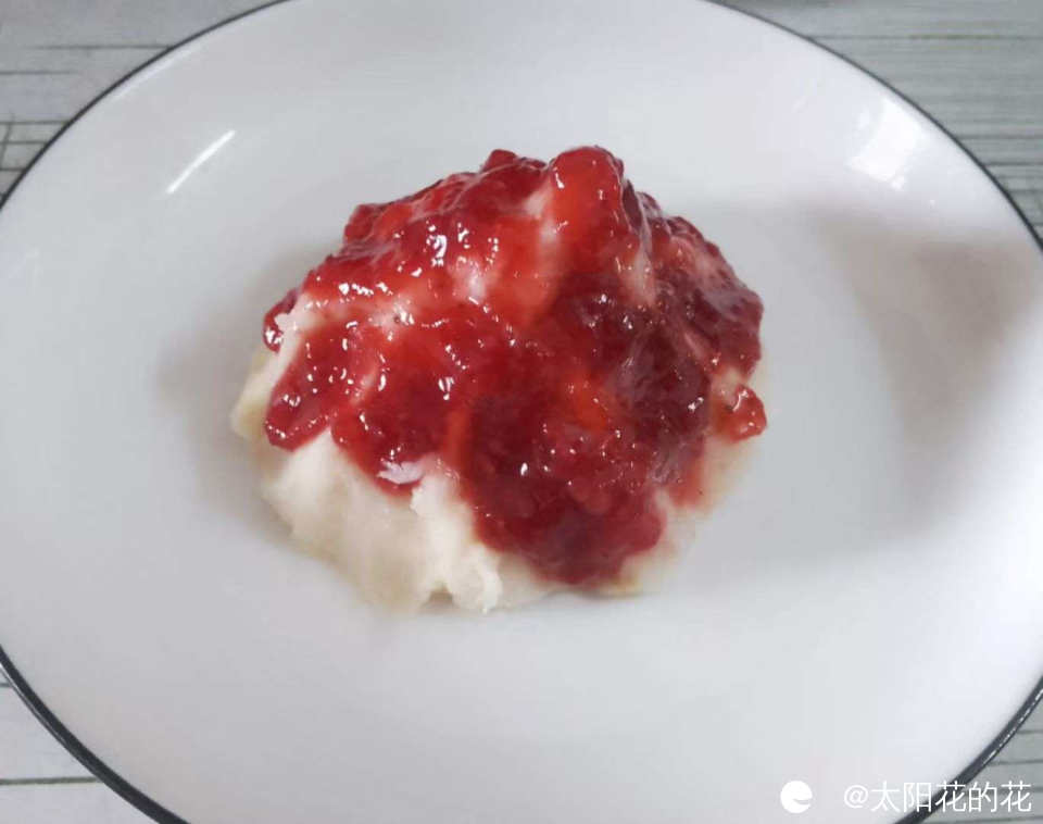 做给小朋友吃的枣泥馅的山药草莓酱冰淇淋……
