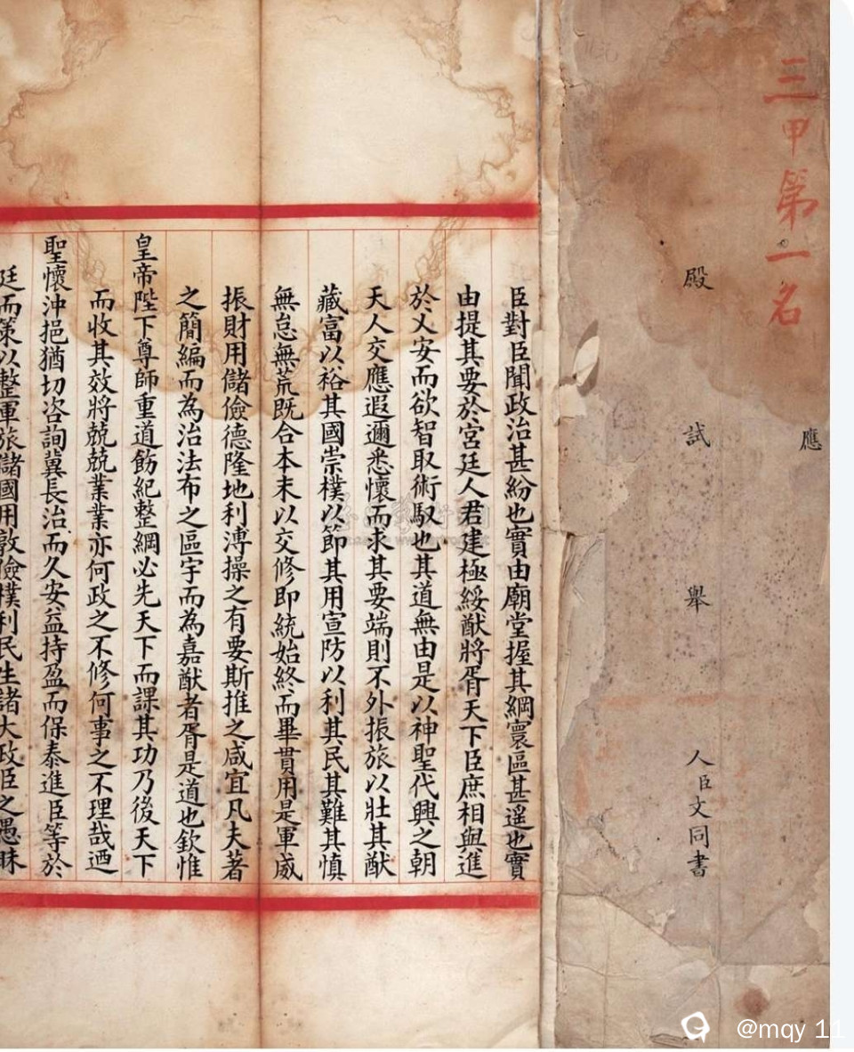 文同书,简简单单的殿试文笔,书写工整,行文简,而言之周详,。