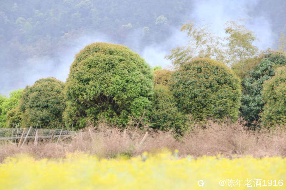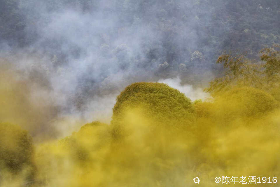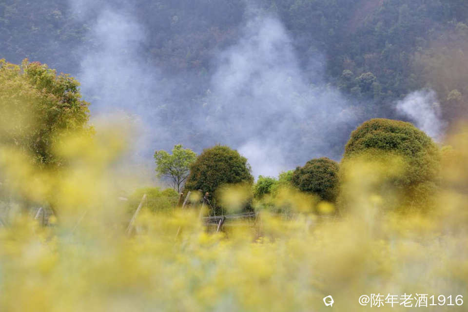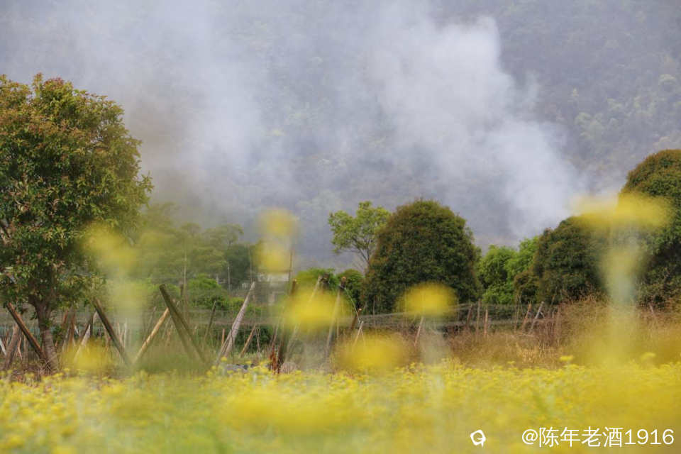 只是觉得密密麻麻的这么大片比较少见,也没有被人采摘,周边田地里长得都是很少,这个场景真有点像专门种植的......你莫讲拍出来还挺好看,与远处的烟雾形成浓浓的烟火气。