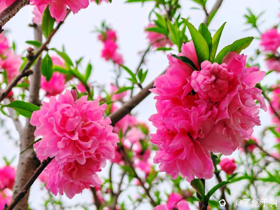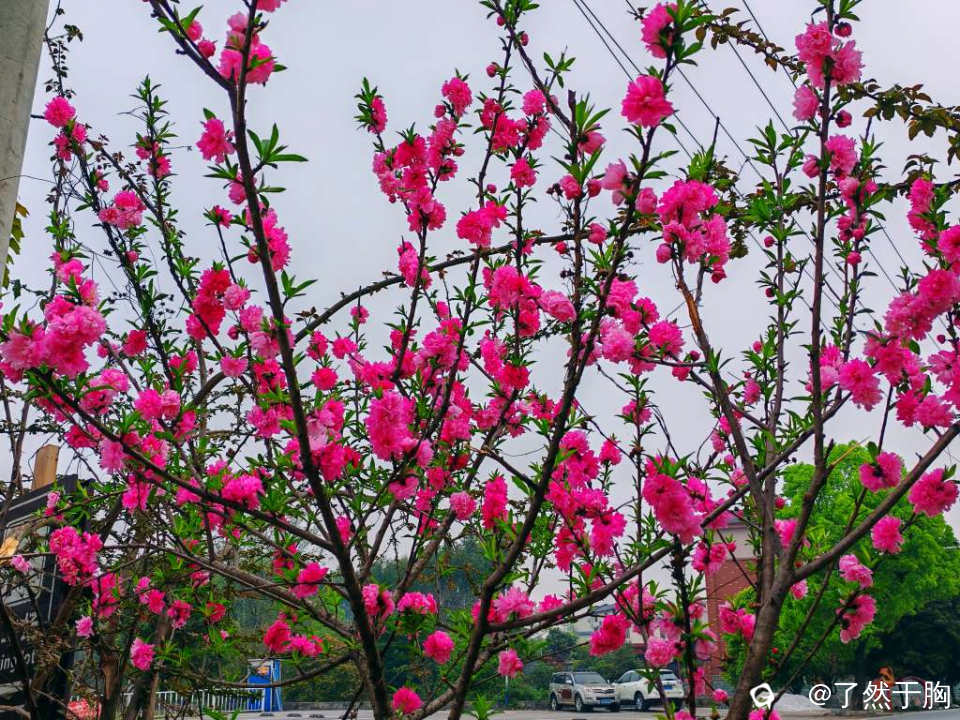 您瞧瞧,这是灵川县甘棠江公园里的一处桃花,这几天因了天气的加持,开得多红火呀。虽说没有一大片,桃树数量不多,但品种不少。红桃,碧桃,白桃,相互错杂,又加上都是千瓣桃花,因而极具审美价值`,绝对能让你观之神清气爽,留连忘返哦。