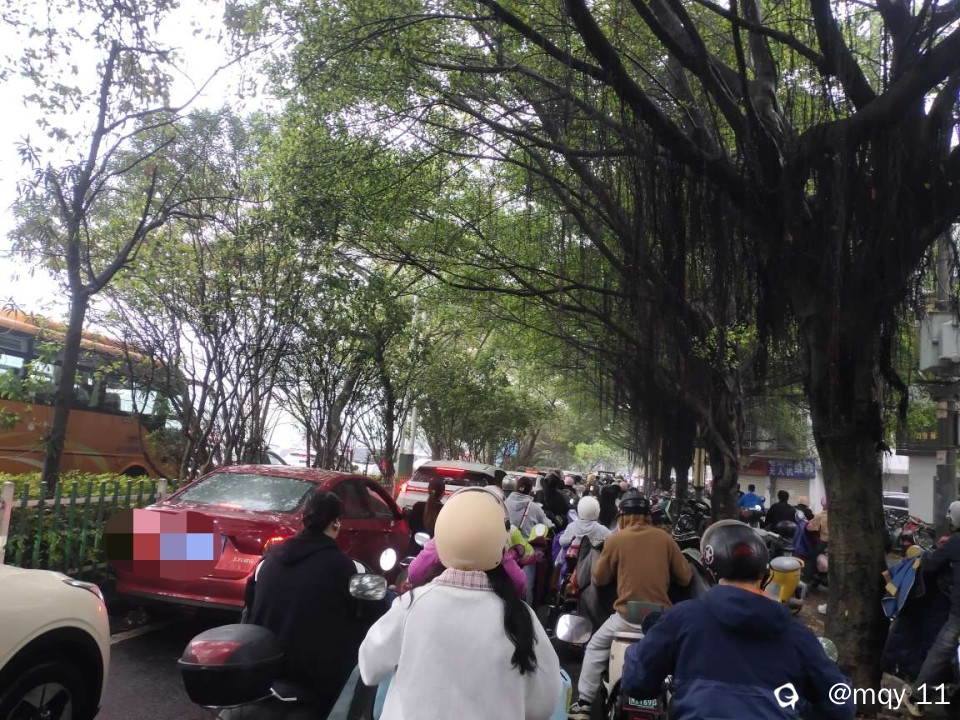 4月10日早上,桂林塔旁的琴潭村翠竹路段,非机动车道,堵了接近有200多米,目测小汽车车与两轮电动车同道行驶,使得本来上班就拥堵的青禾美邦十字路口,更加拥堵。