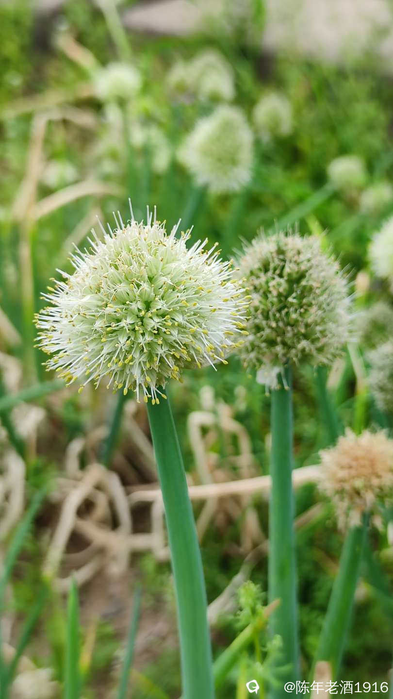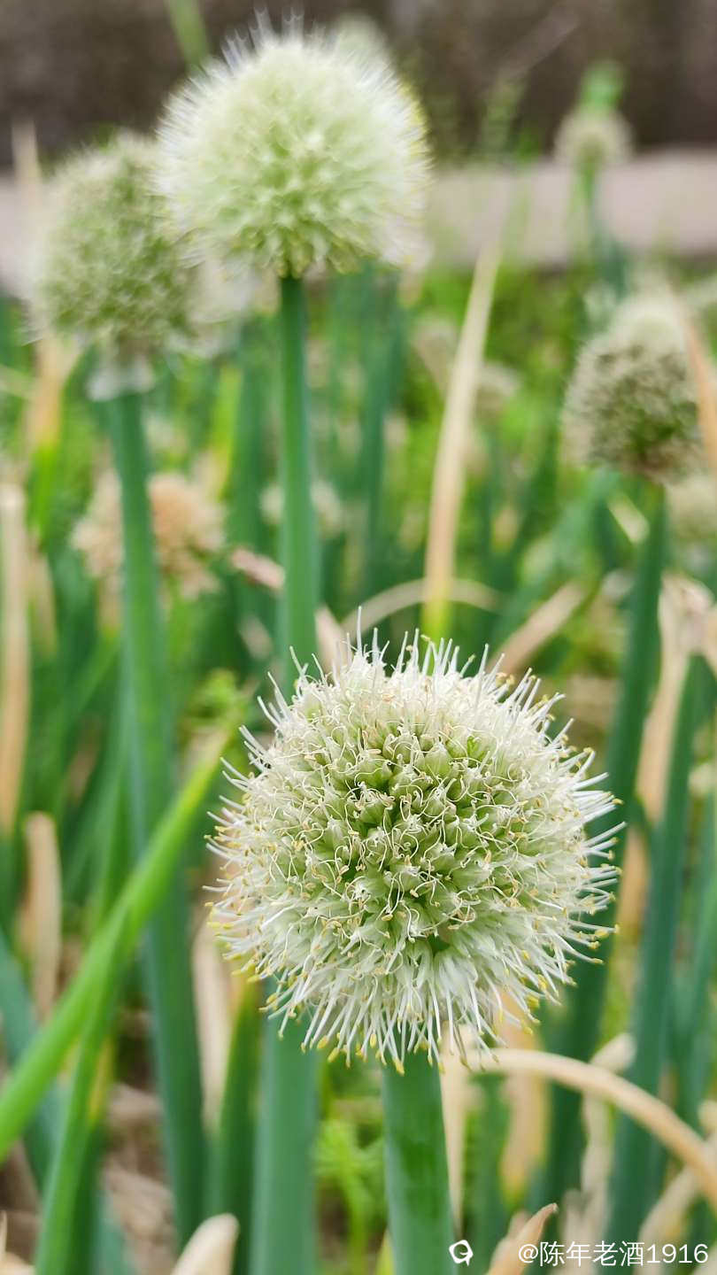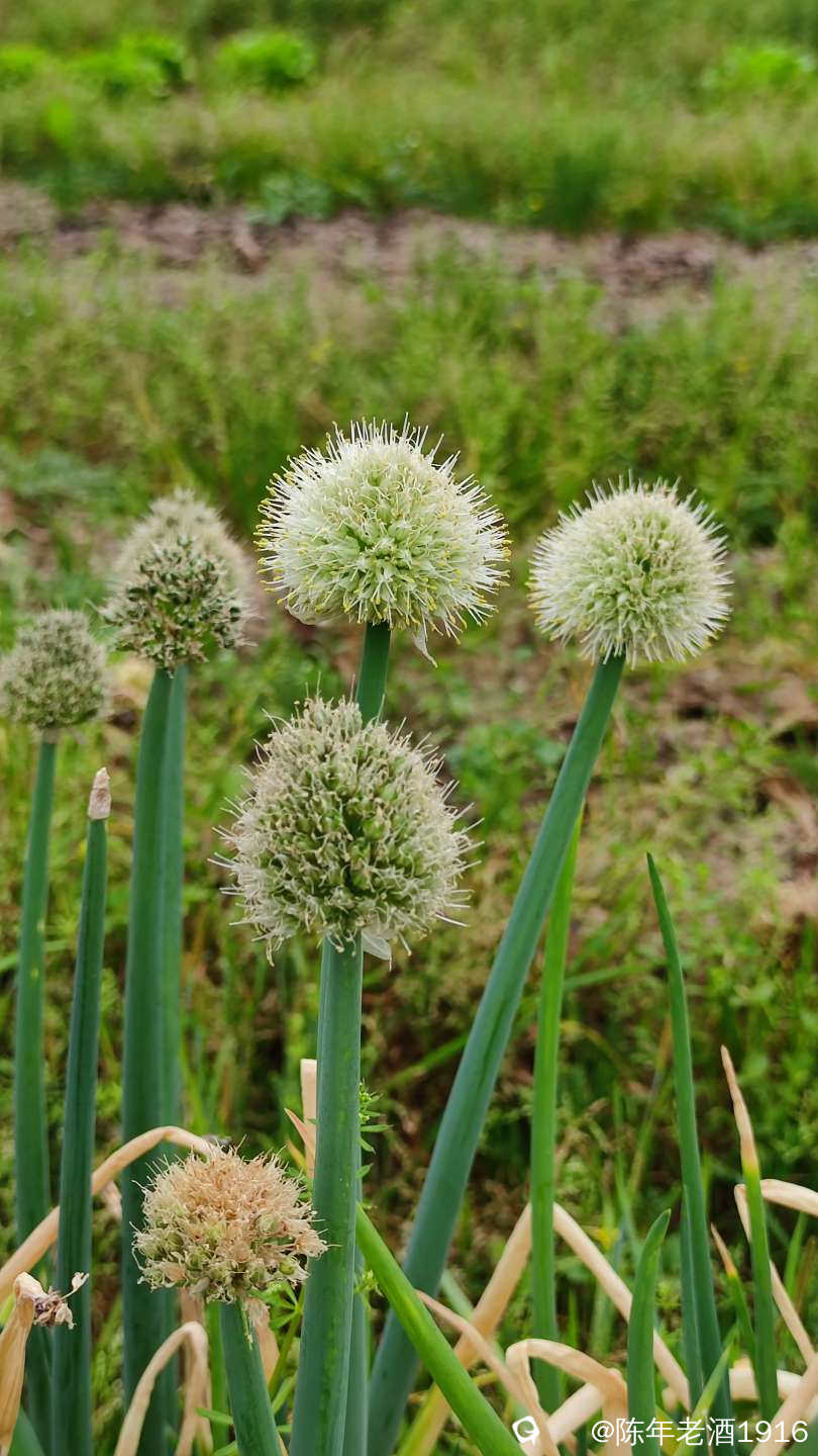 田间的葱开出一朵朵毛绒绒球状白花,看着有点像蒲公英,摸着软绵绵的,闻着葱香味十足,挺招人......