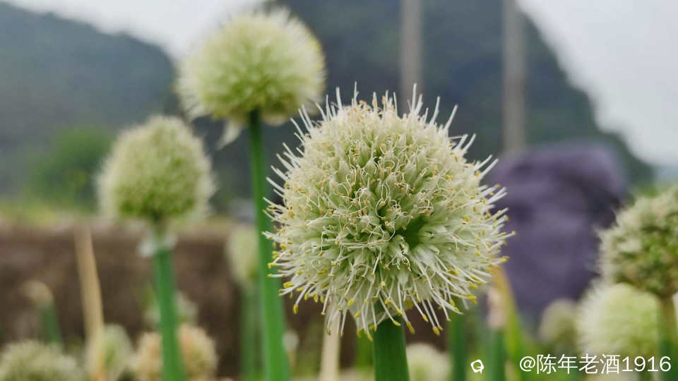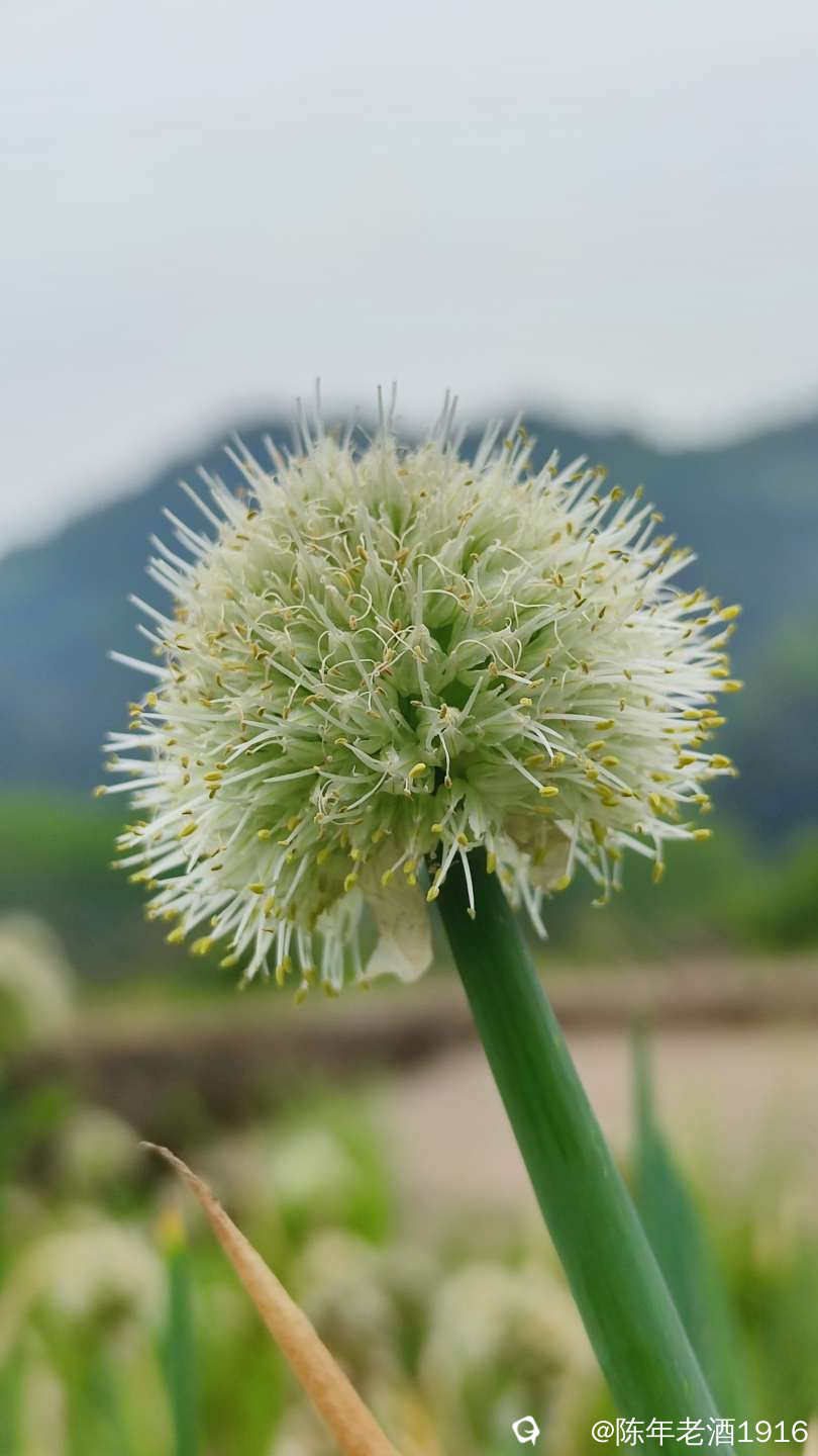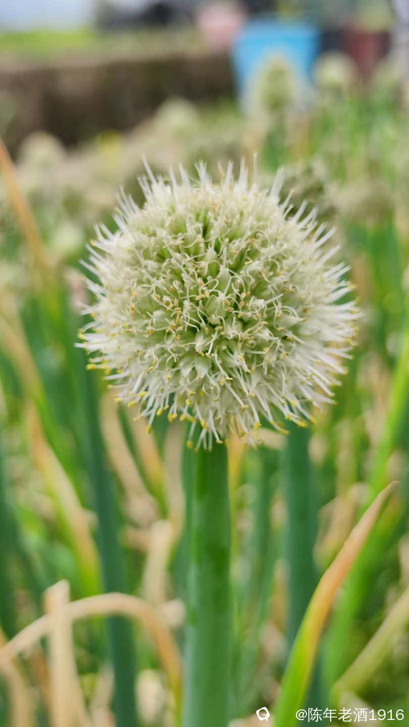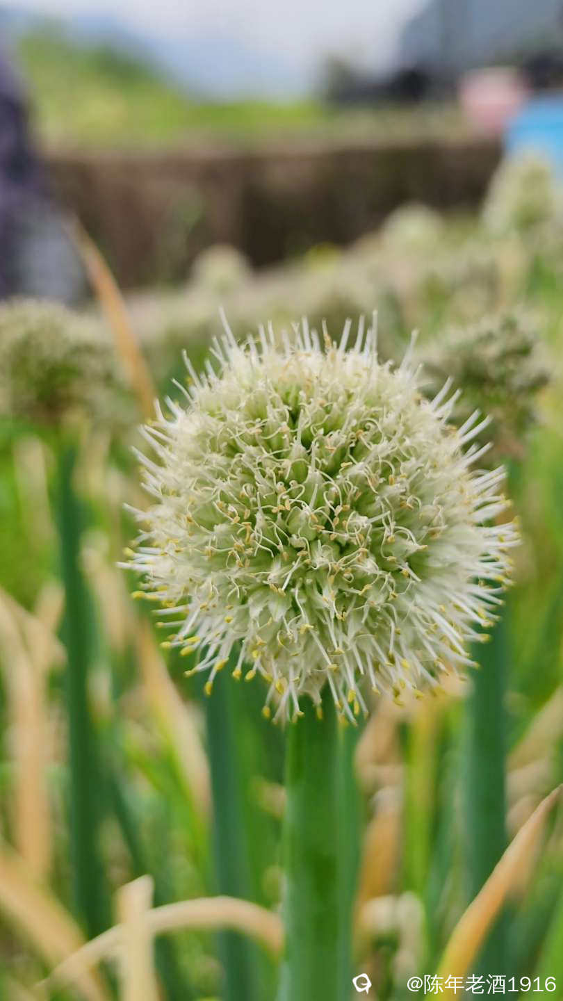 田间的葱开出一朵朵毛绒绒球状白花,看着有点像蒲公英,摸着软绵绵的,闻着葱香味十足,挺招人......