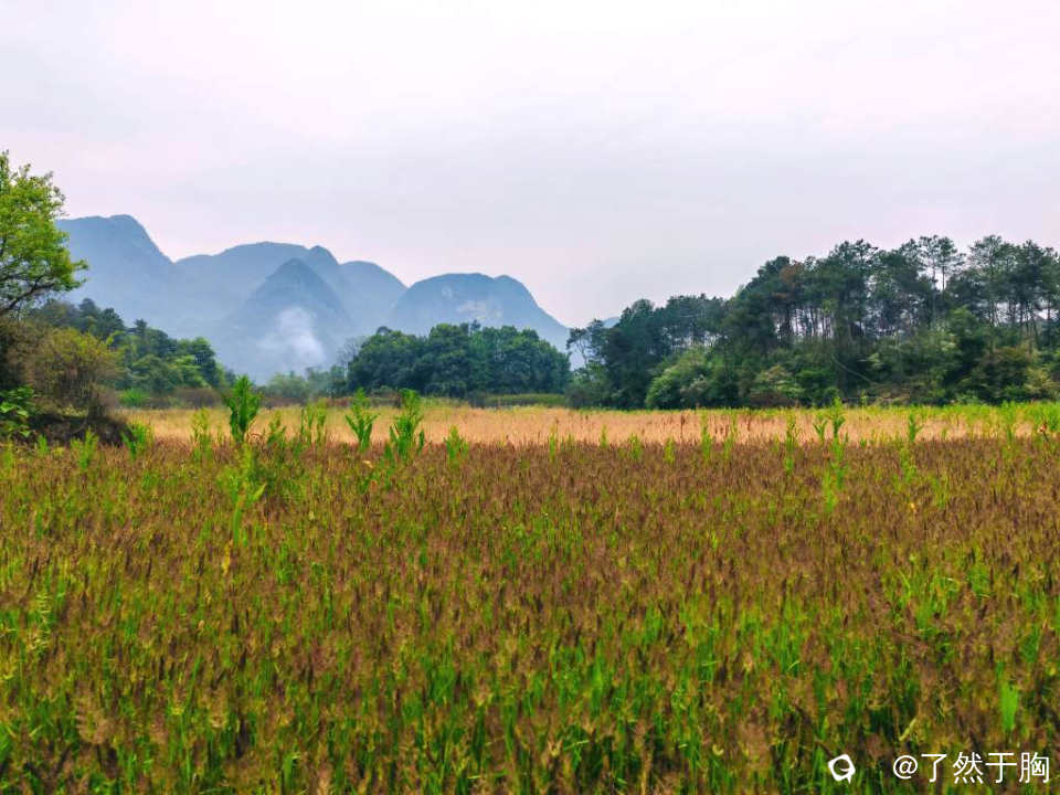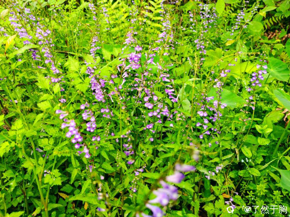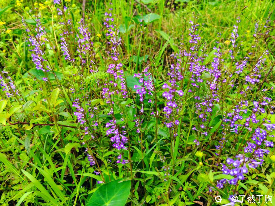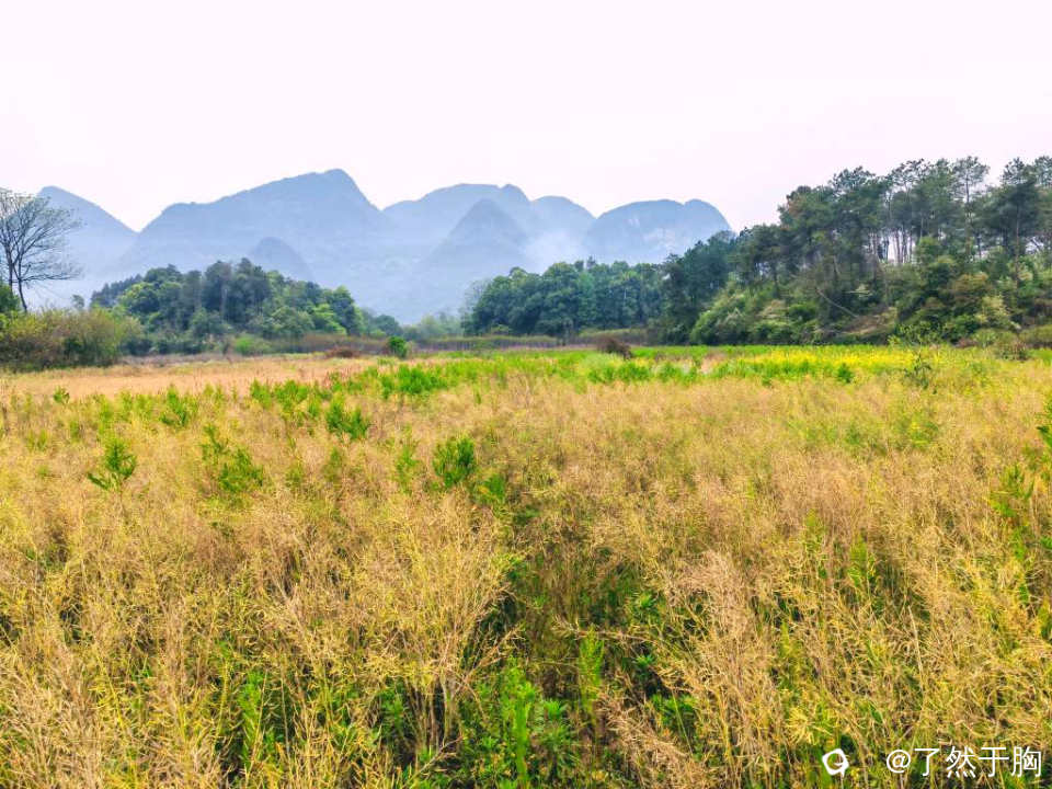 再次,是那些花已谢结成的菜籽,野草结成的草籽,荒田里有名无名的野花,甚或是枯草,都犹如打泼了调色版似的,赤橙黄绿青蓝紫,色彩缤纷,美不胜收。
