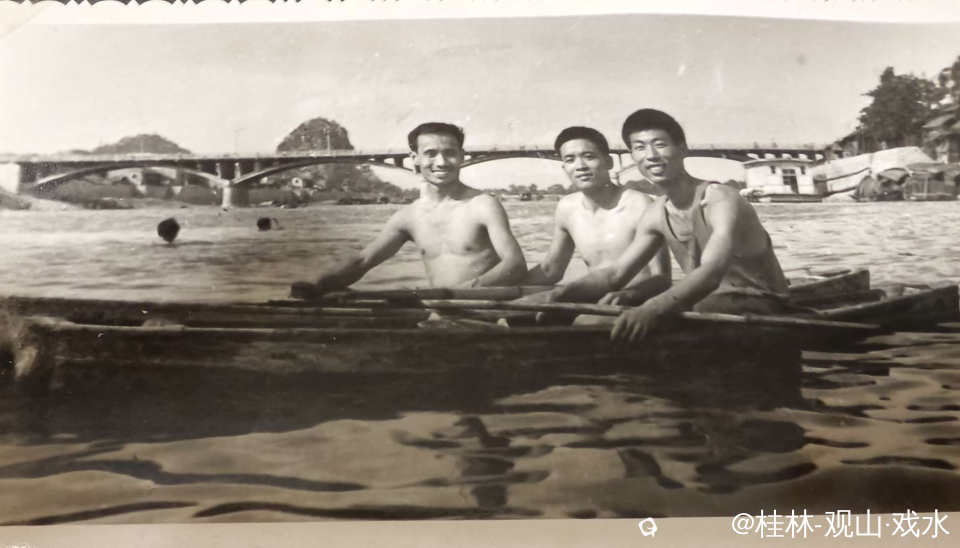 你们在訾洲划的小艇,俗称“飚艇”。那时的解放桥还是三座桥墩。我猜划艇上左边第一个是你吧?