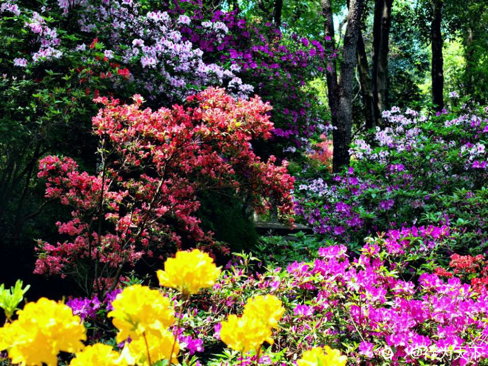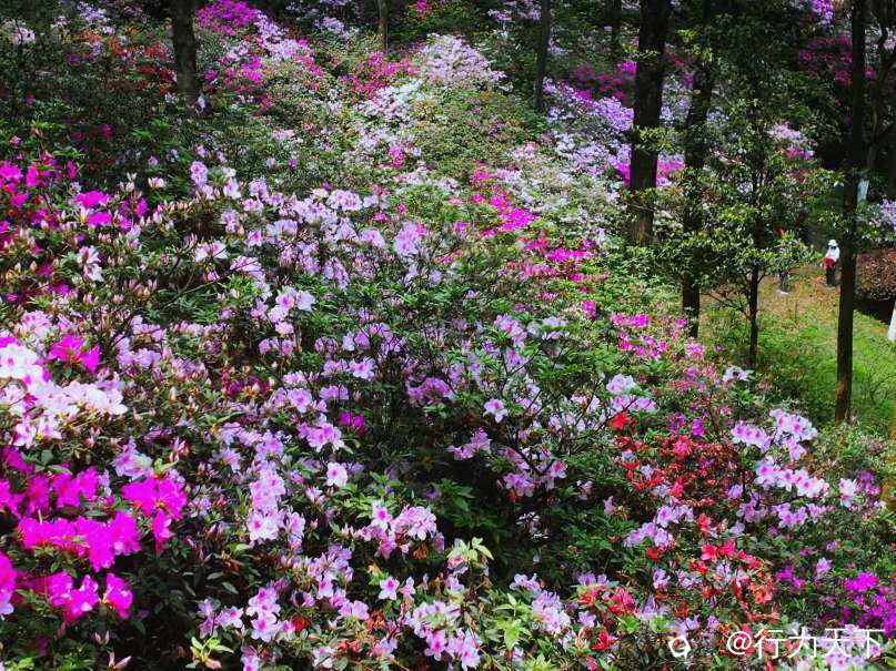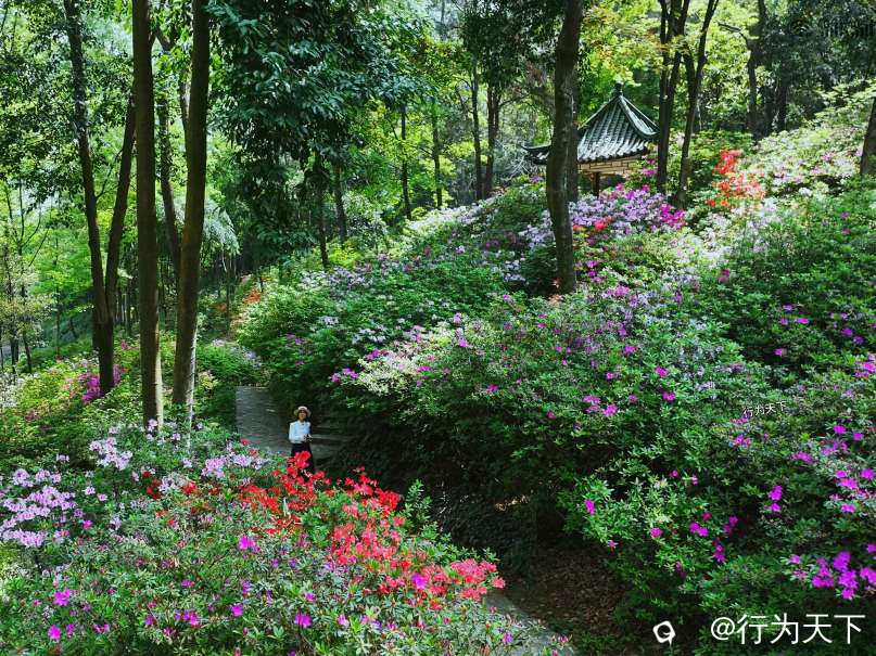 远处楼台上,有人吹起笛子。笛声清越,穿花度水而来,与鸟鸣相应和。几个游客驻足倾听,面露愉悦之色。杜鹃花期不过旬日,但这植物园的春色,却将绵延数月。