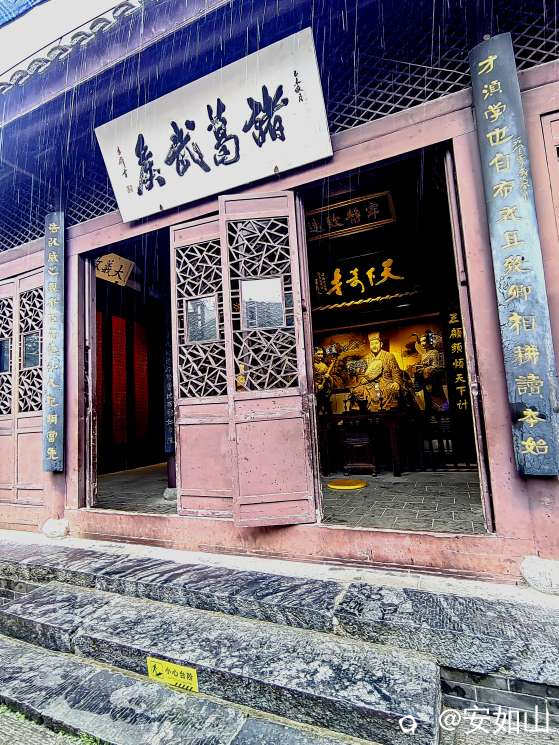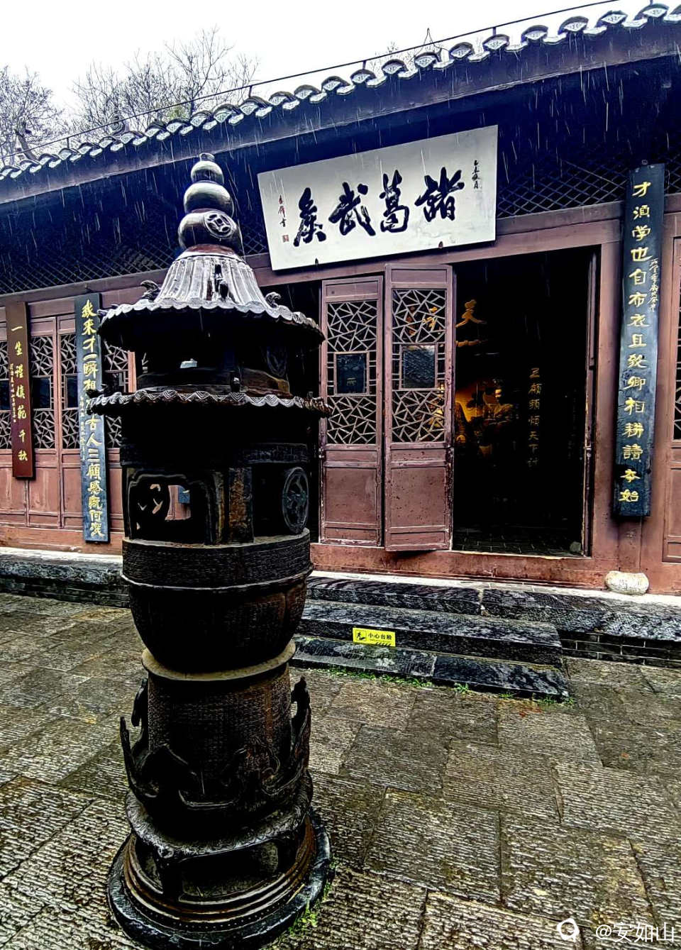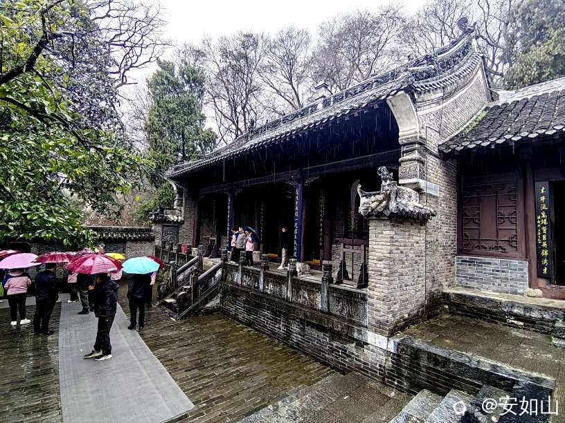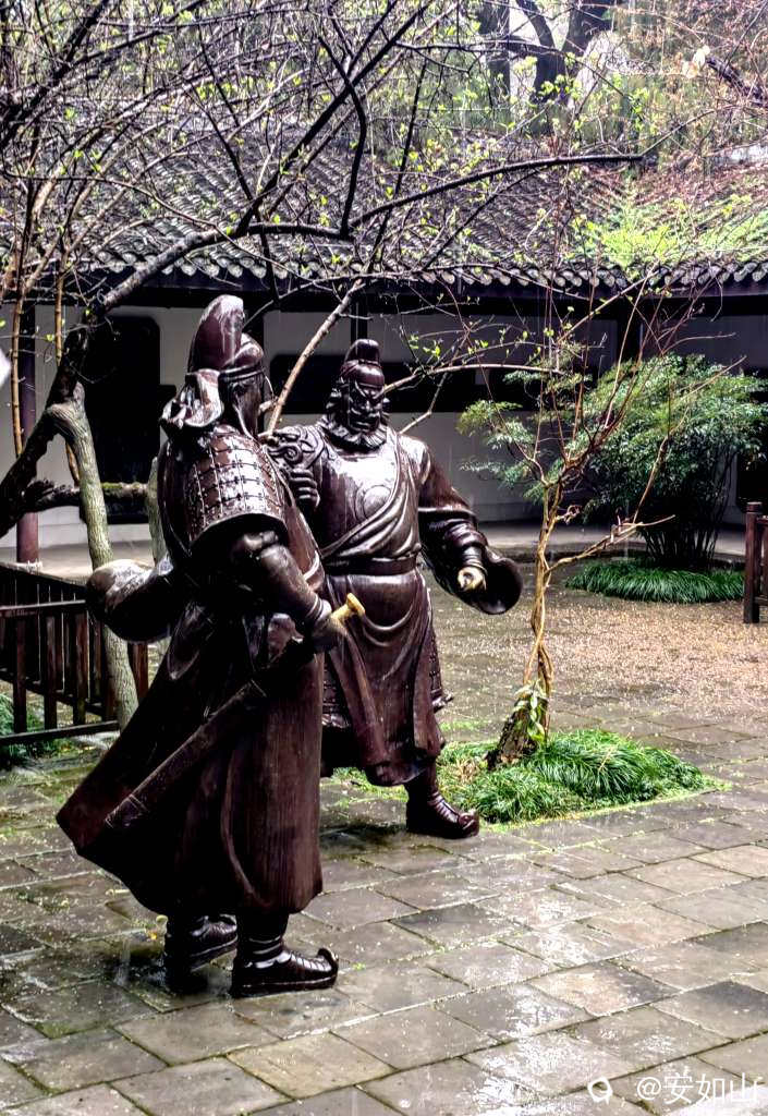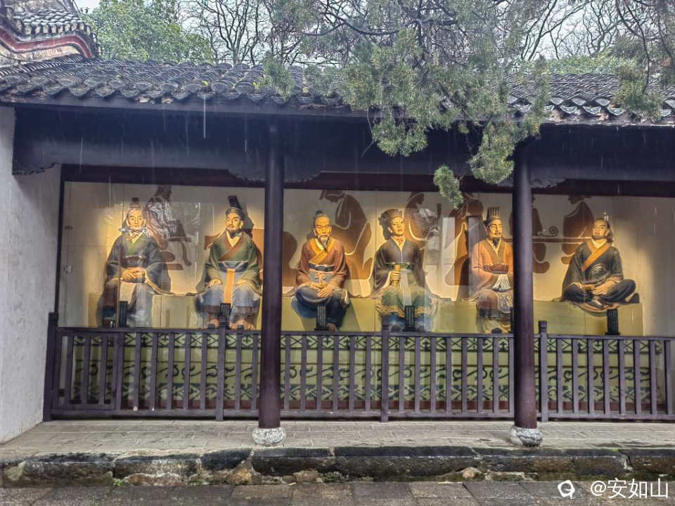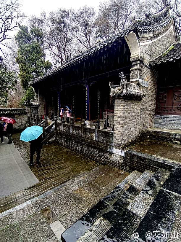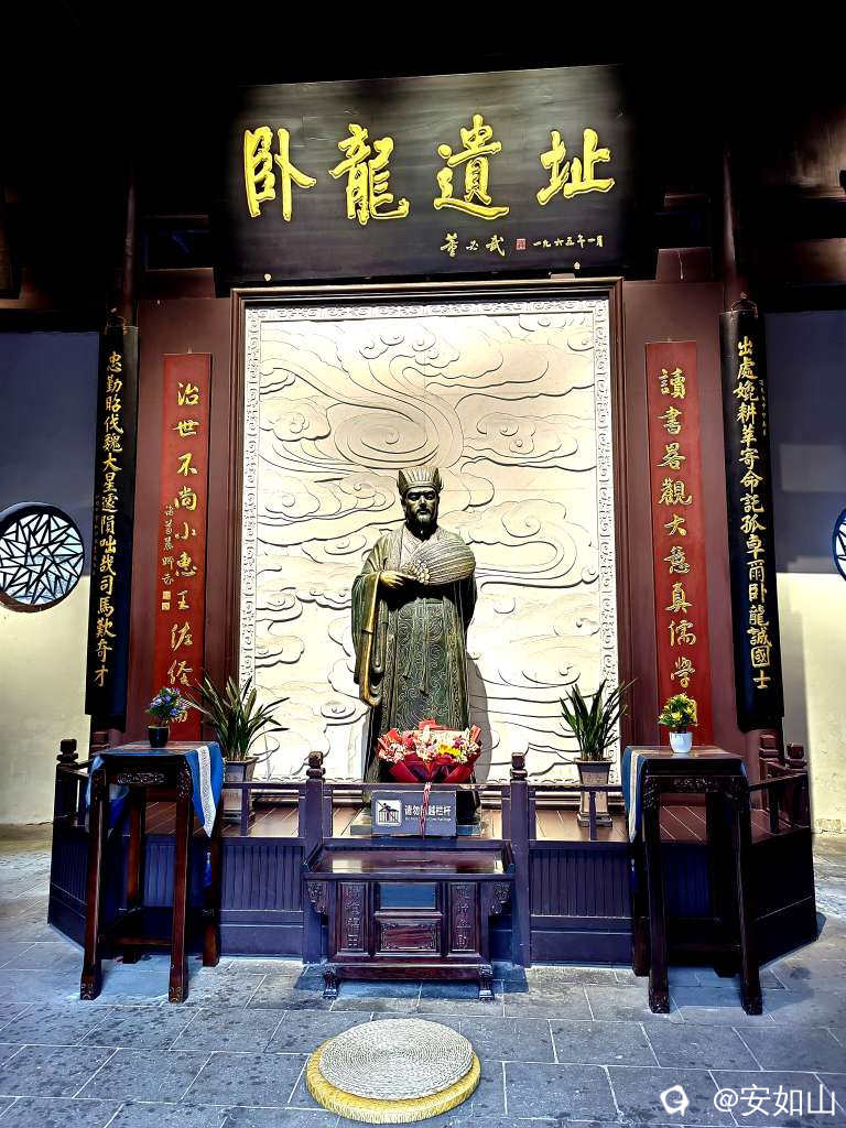 古隆中这地方,山丘林木茂密,山泉长流,隆中指空中,据这里的县志记载:这里的空中常发出隆隆响声,诸葛亮号称卧龙先生,隐居在此处藏龙之地,确实应景。我们到这里时正下着小雨,林中的雾气正浓,雾飘浮不定,时缓时疾,让人觉察有股仙气,原先诸葛亮居住的草屋当然不在了,园区里按诸葛亮生平事跡建了武侯祠,三顾堂,老龙潭等建筑,人在园区细步慢行,休闲看景确实怡心!