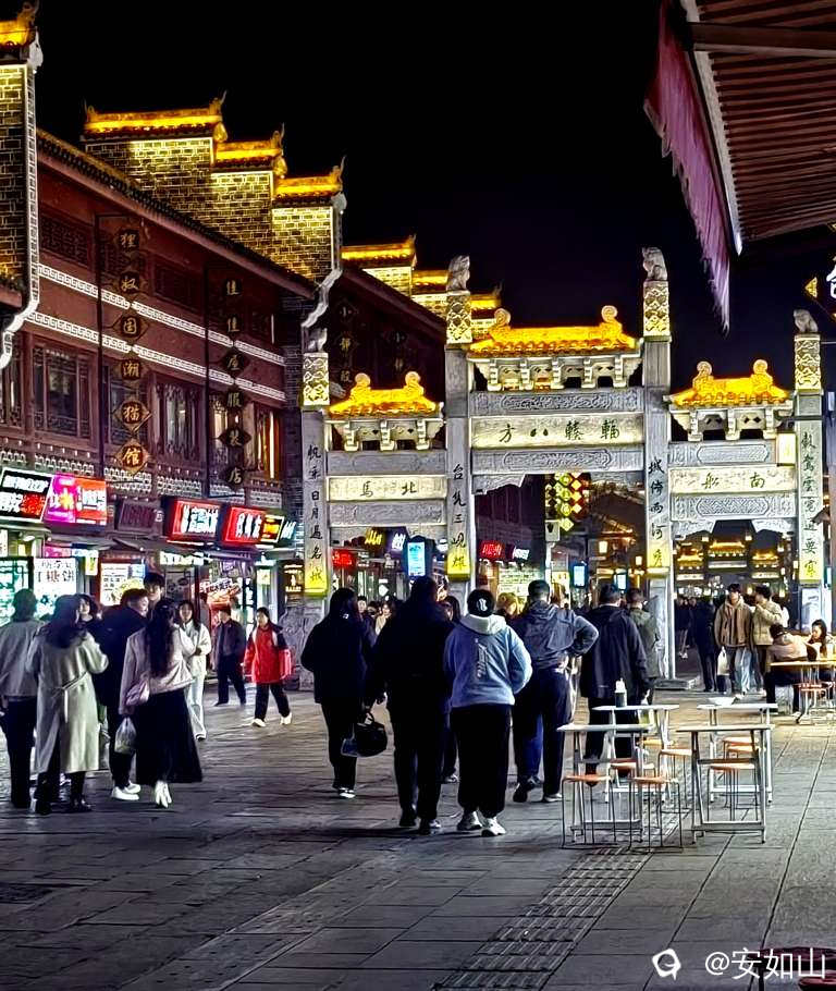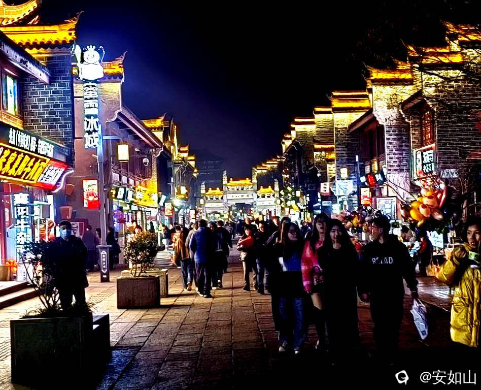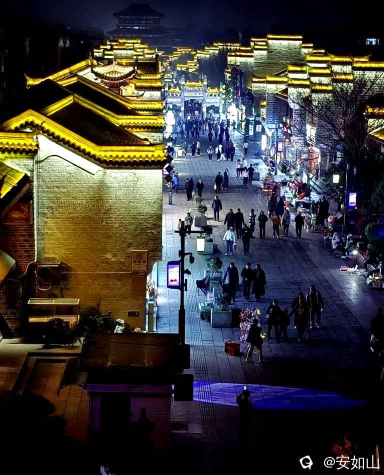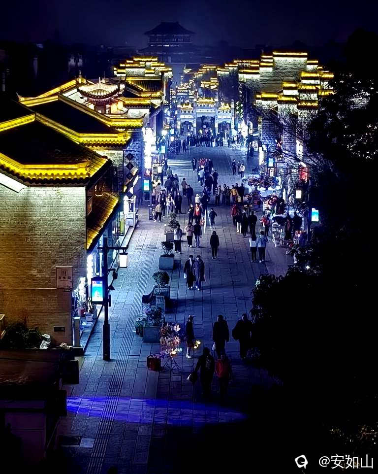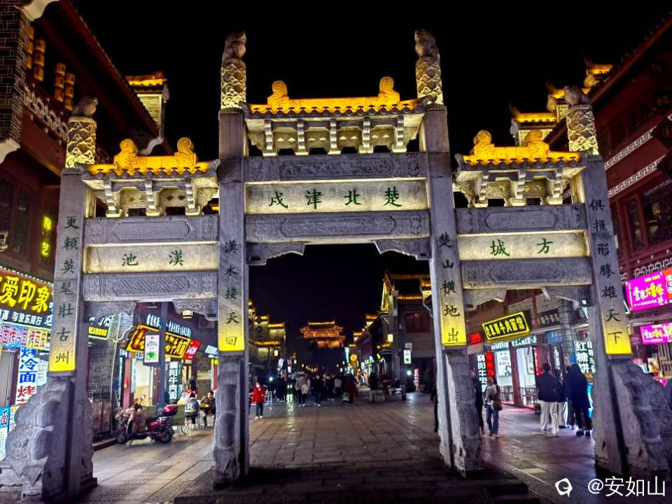 古城内有两条仿古街,一条买货多,一条吃喝多,沿街有老钟搂古亭台,襄阳老城与别处老城相比,街面宽阔大气,沿街建筑有高低错落凹凸感,不似完全统一式样,因而颇具灵气,晚上人气也旺
