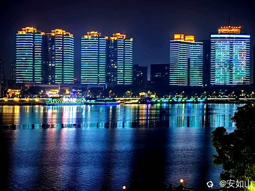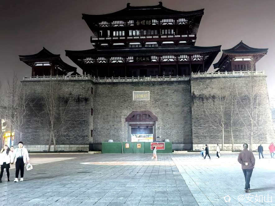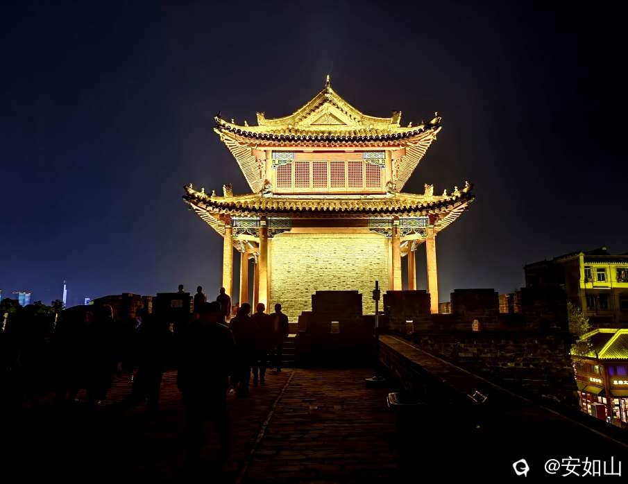 从荊州到襄阳的开车路程二个多钟头,我们在路上订了一家新开业维也纳店入往,我们到达时是下午,这家条件真不错,房大卧具新,但离老城有些距离,我们决定打的去,一是喝酒方便,二是免找停车位辛苦。在的士上,司机介绍了一家当地小有名气的家常菜馆,晚餐我们好好的喝了一顿,老实说菜一般,喝完己近晚八点,襄阳古城四面有完整的古墙,有好几处修建好的城楼,式样各异,登楼不要钱,但晚上八时关闭,因此我们只登了一个主城楼,从城楼四处眺望,夜景真的不错!