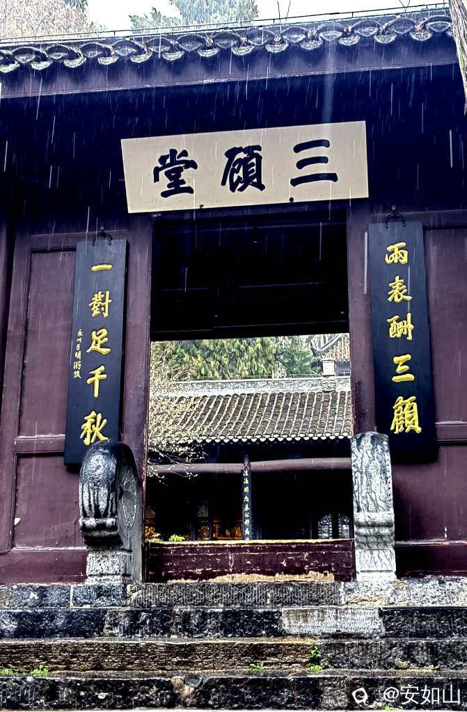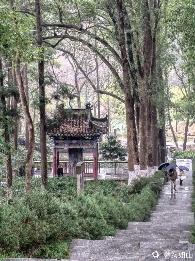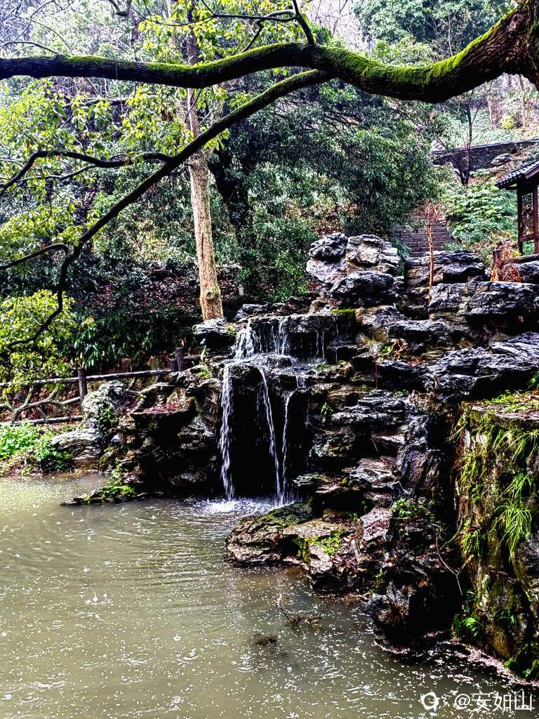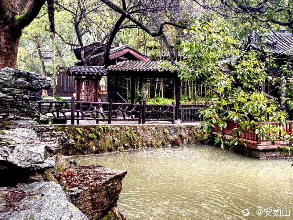 出了三顾堂,往山深处行走,一股清泉从山石中流出,潺潺有声,积泉水于潭,隐隐约约有龙藏身于此,或栖于山洞,或有龙在潭