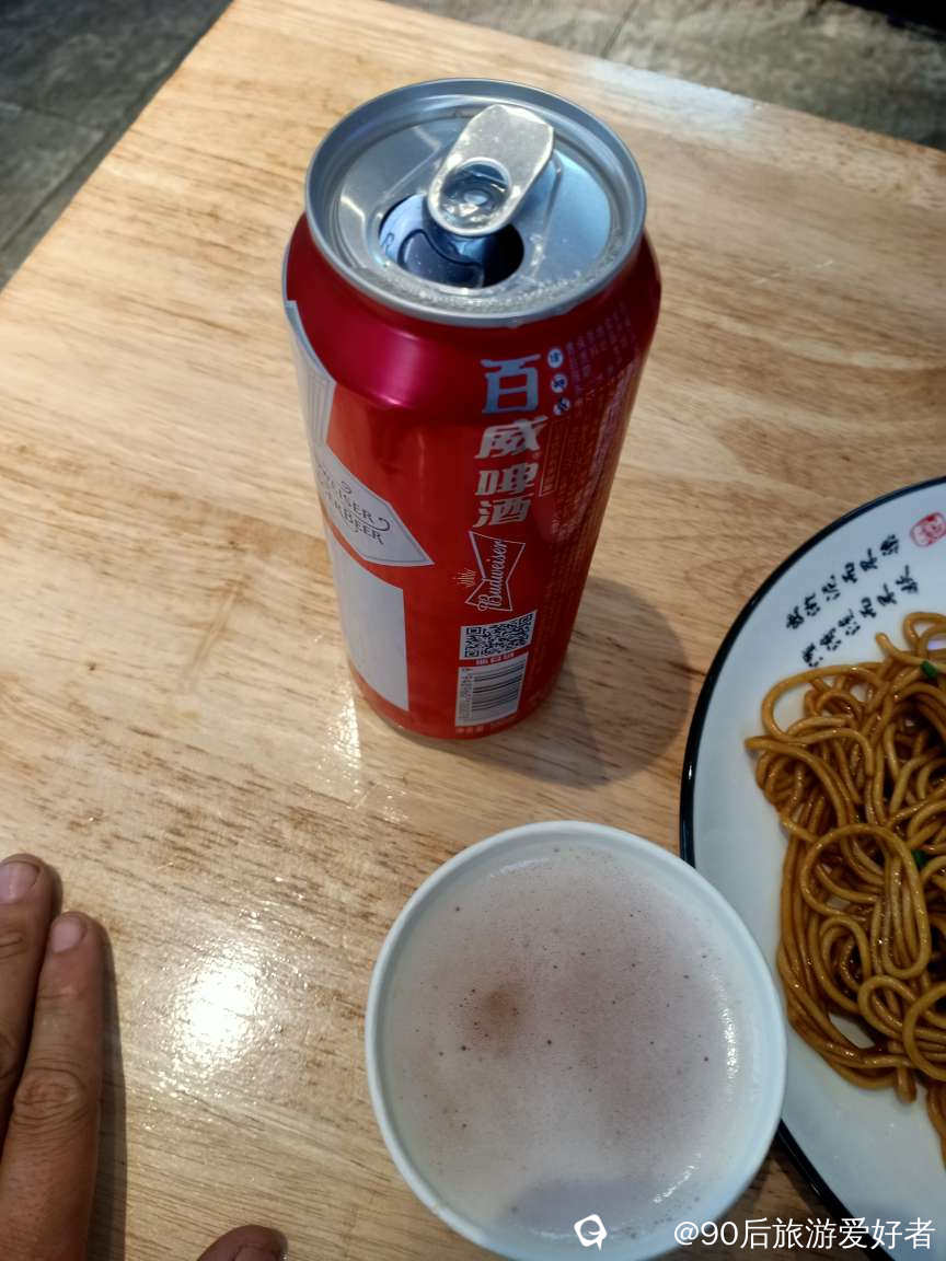 宁波市区,一份葱油面,一罐百威啤酒,一起十六块钱你们觉得贵不贵
