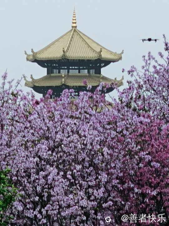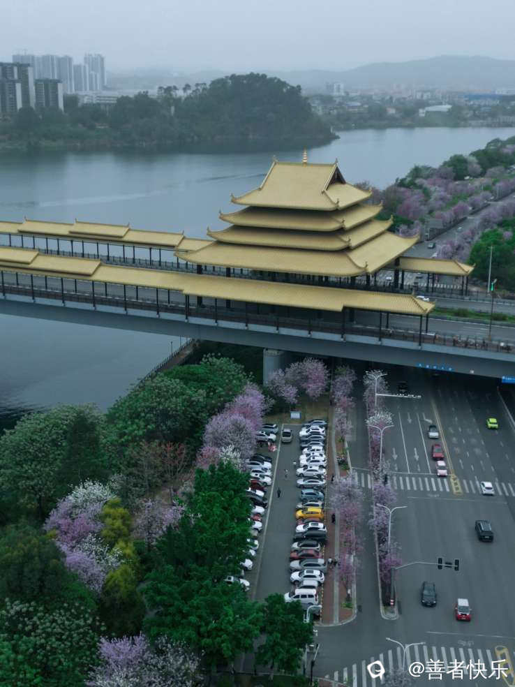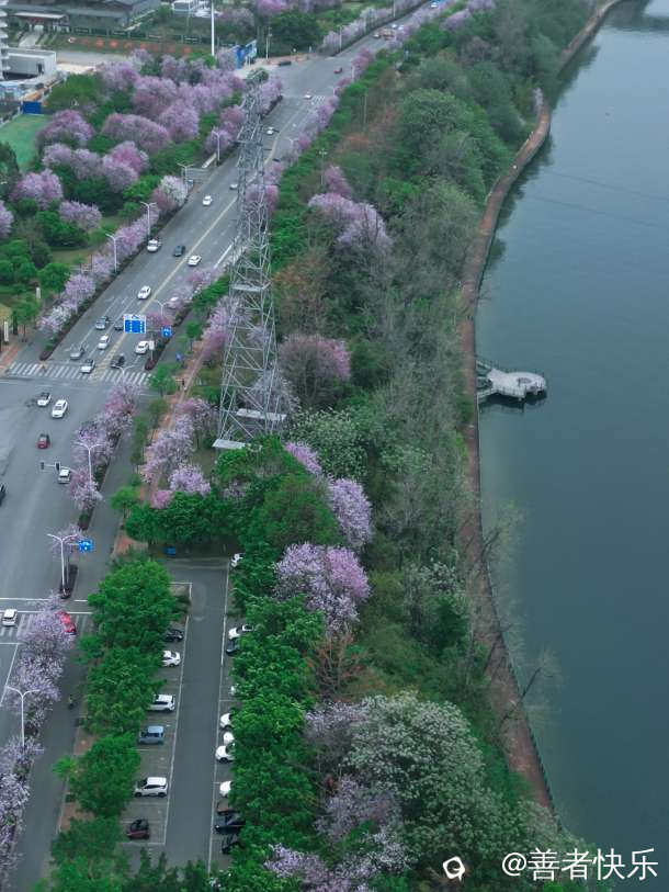 #航拍美丽的柳州城#被紫荆花盛开了#游客如梭打卡留念。