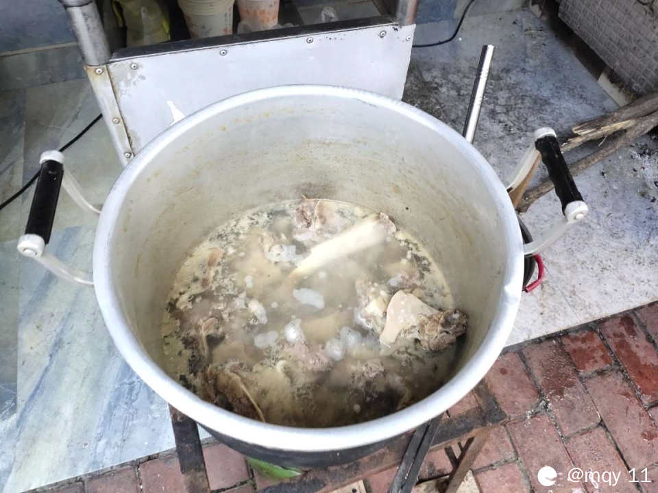 柴火灶,骨头汤,现包的馄饨,现场煮制。