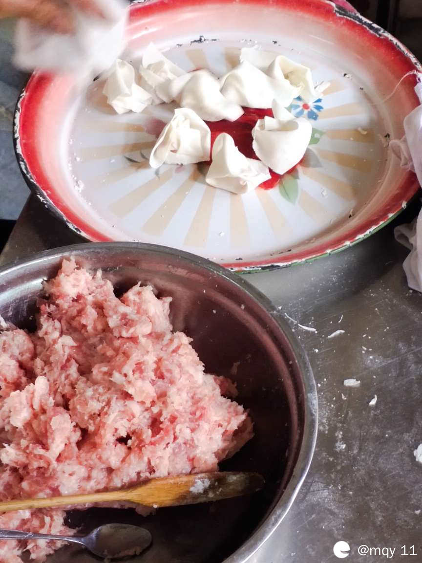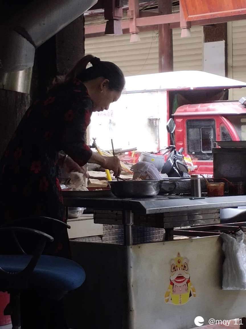 一个小店能经营到如此长时间真的很难得,看着她俩认真包着馄饨,都是在顾客到场点餐之后再包,包好之后放入用柴火烧的大铁锅里煮,然后再配上骨头汤,加上葱花,就可以开吃了。