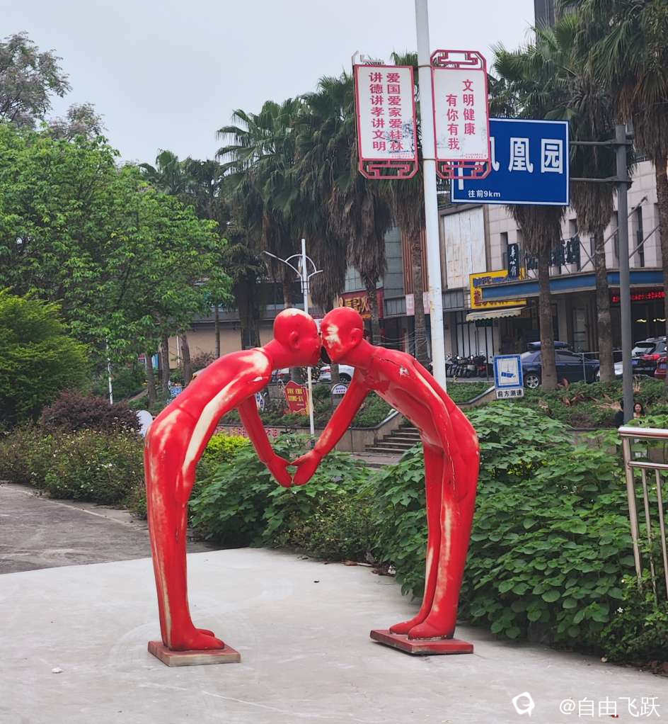 原本一左一右放在村边楼盘大门口的两弟兄,晓不得哪个摆成这样子,由热烈欢迎变成氛围诡异:
