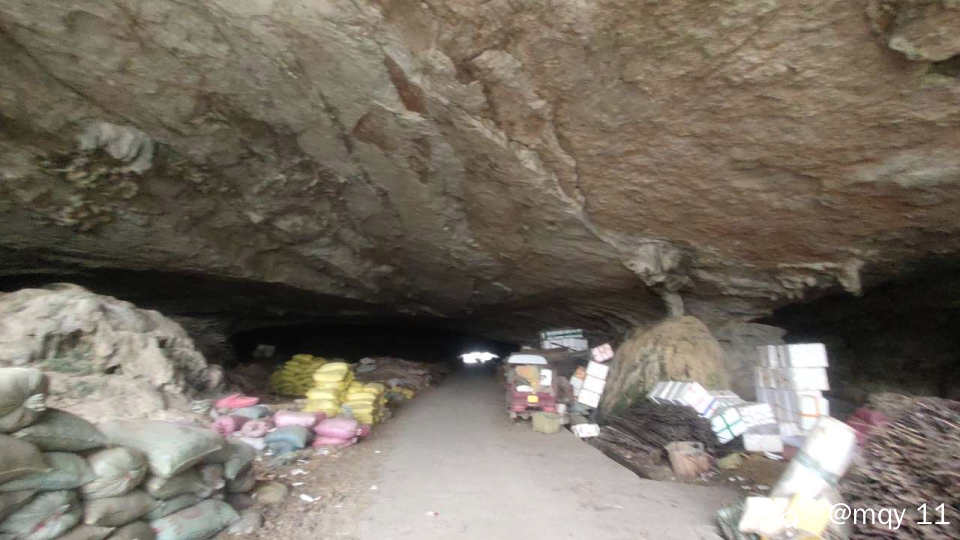 目测将近有200多米的穿岩,变成了村民藏宝贝的仓库,整齐码放在通道的两侧,感觉非常的壮观。