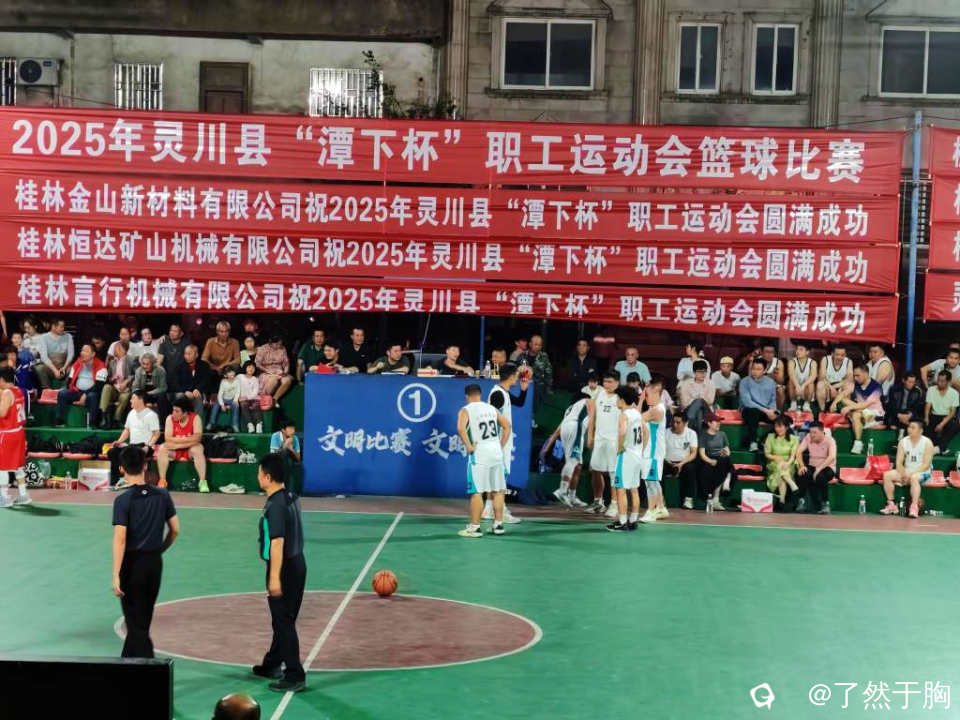 2025年灵川县职工运动会在县体育馆及馆外篮球场开赛。目前在火热进行中的,是“潭下杯”篮球赛。