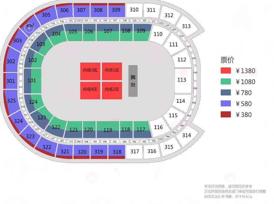 有点后悔,后悔没有买1380元的内场票,580元的离舞台太远了。