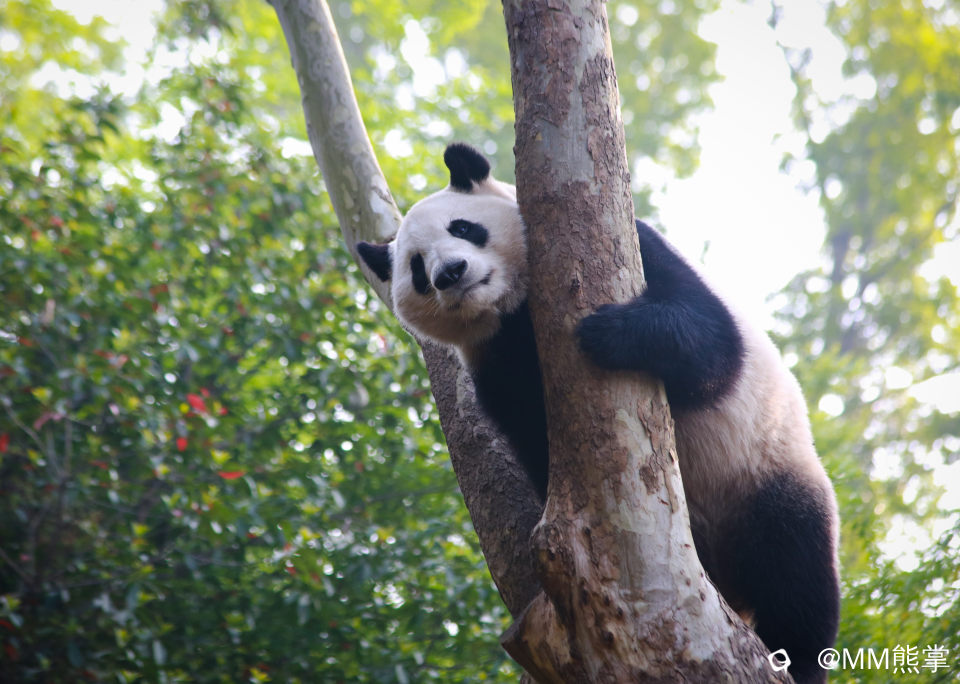 最后一天排队看花花,终于终于看到了花花的盛世美颜,虽然被一小枝竹叶遮挡了脸夹,但不影响花花的美貌!那天和叶也异常活跃,先跑到后院小树林,爬到梧桐树上整活,配合着两脚兽摆POSE.太给力了!