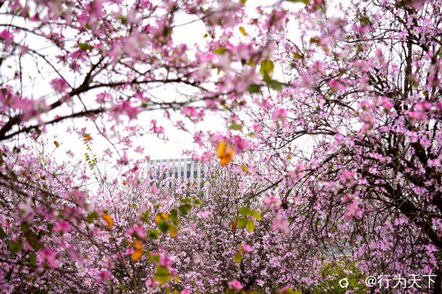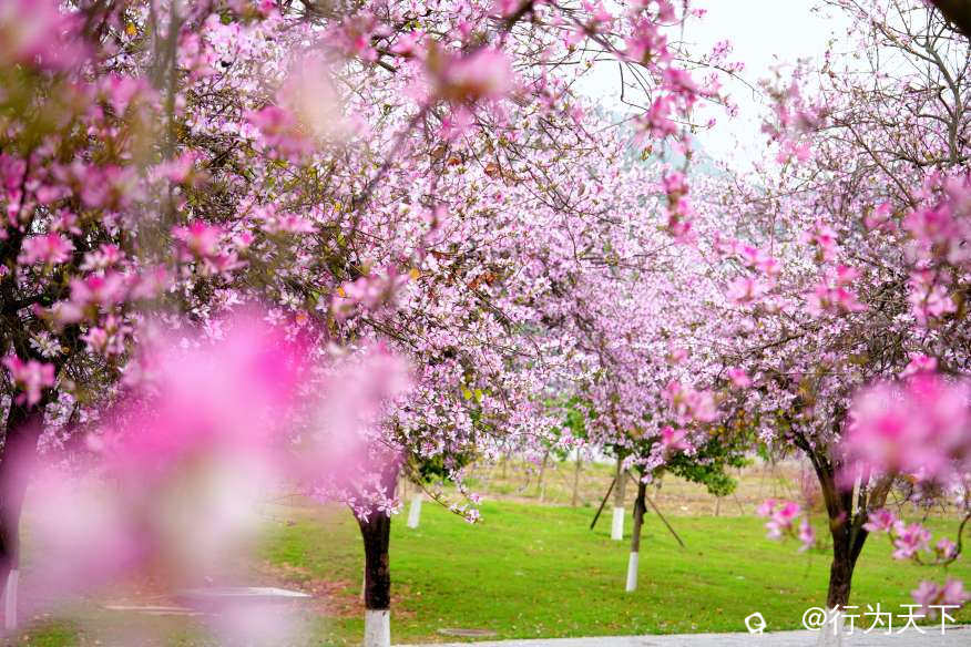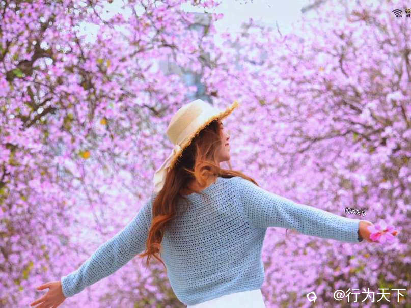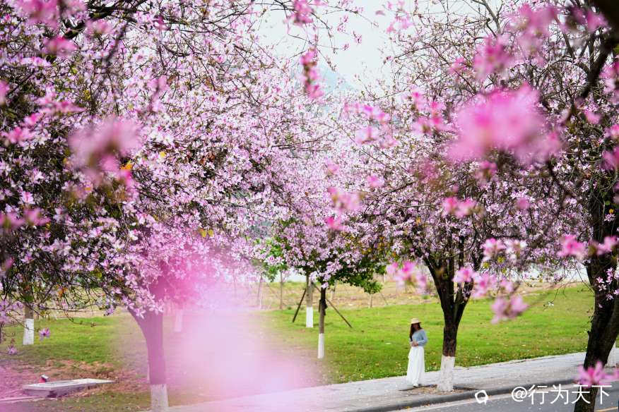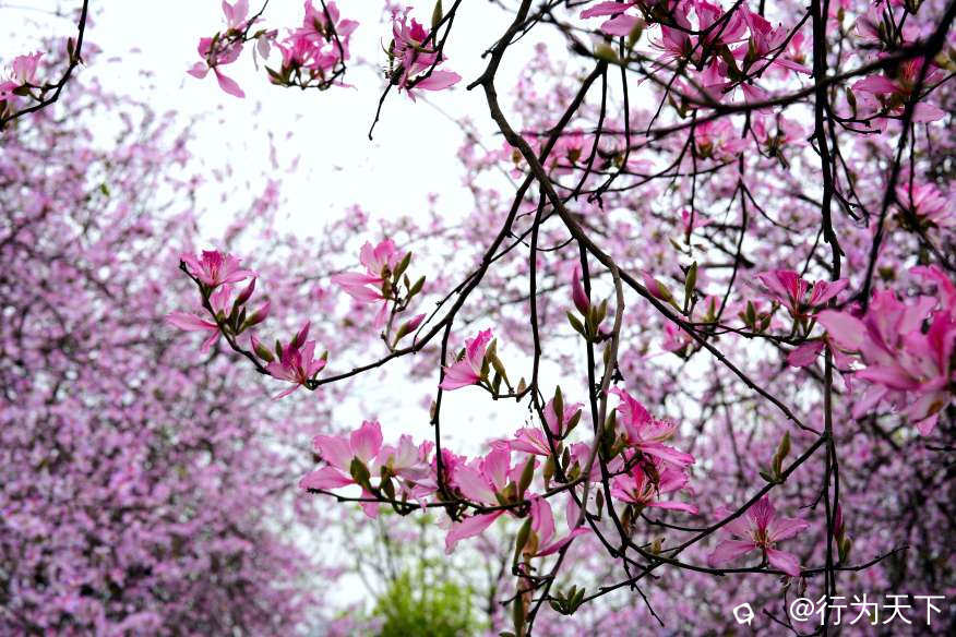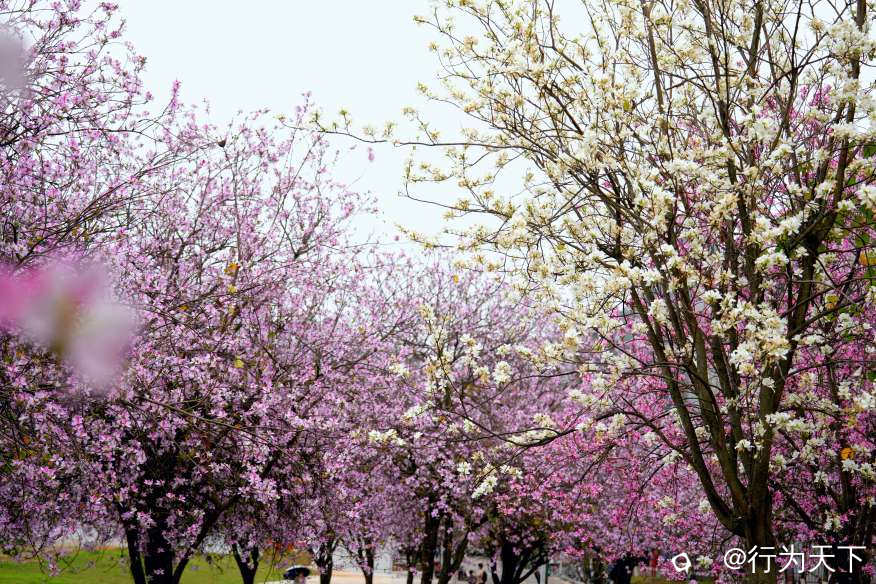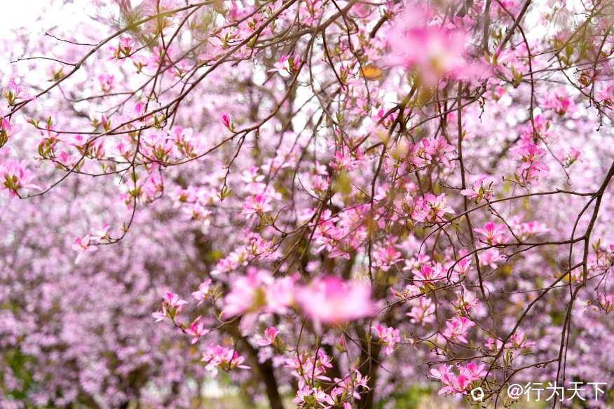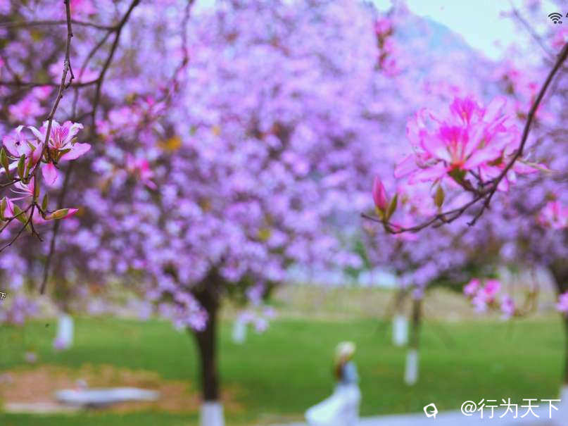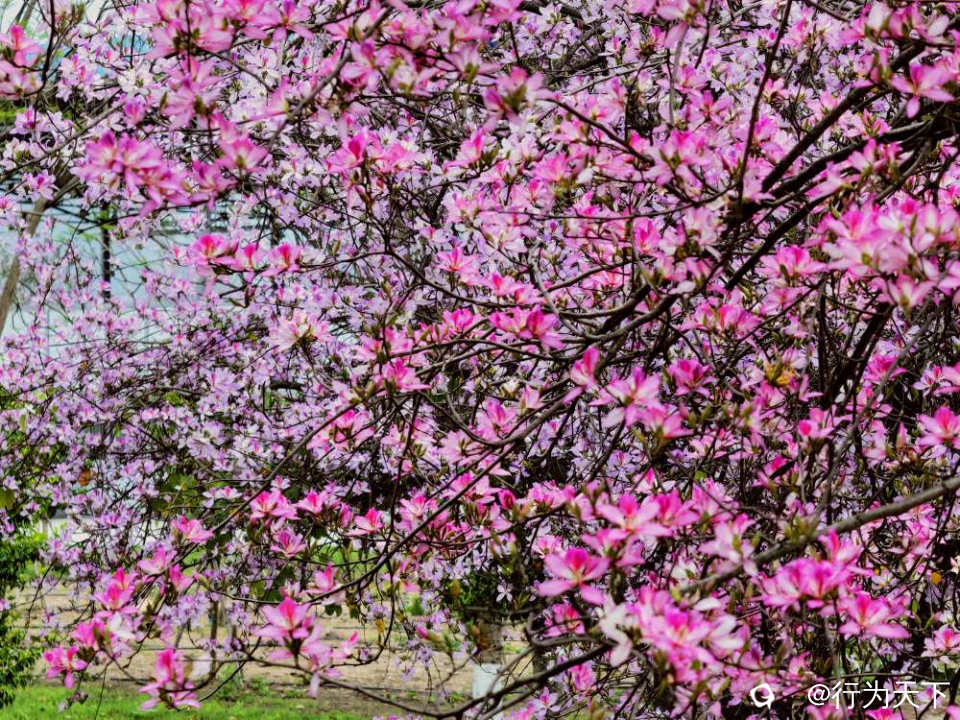 紫荆花盛开时,粉紫色的花朵缀满枝头,宛如一片梦幻的云霞,将整条道路染成绚丽的色彩。
