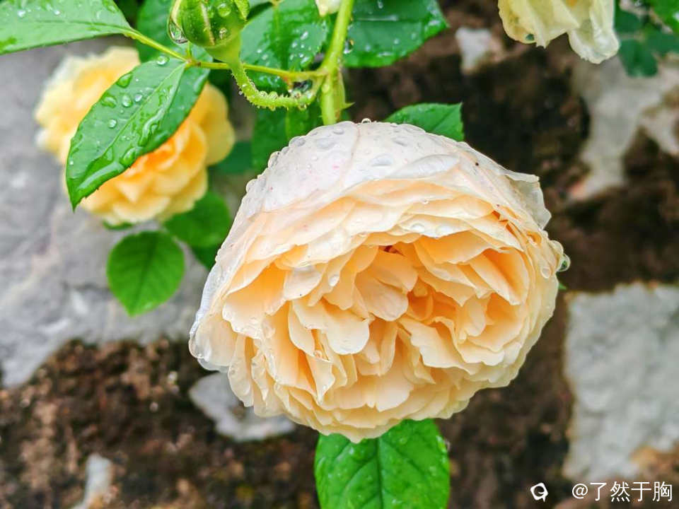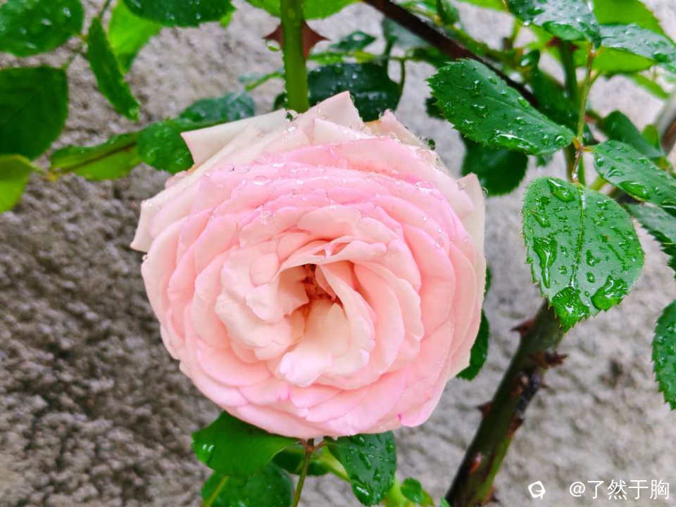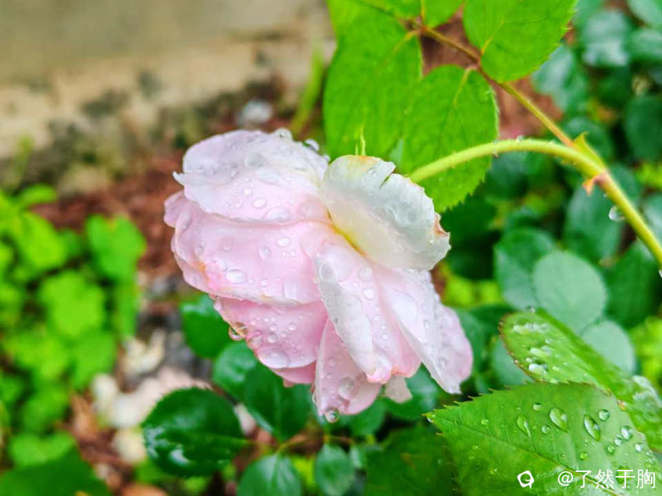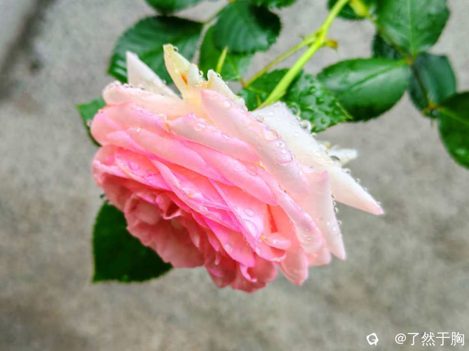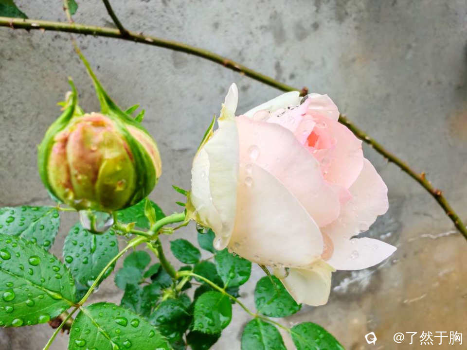 灵川县灵西路上的月季,品种多,色彩斑斓。花朵及叶片上,含珠带露,更显娇媚迷人。