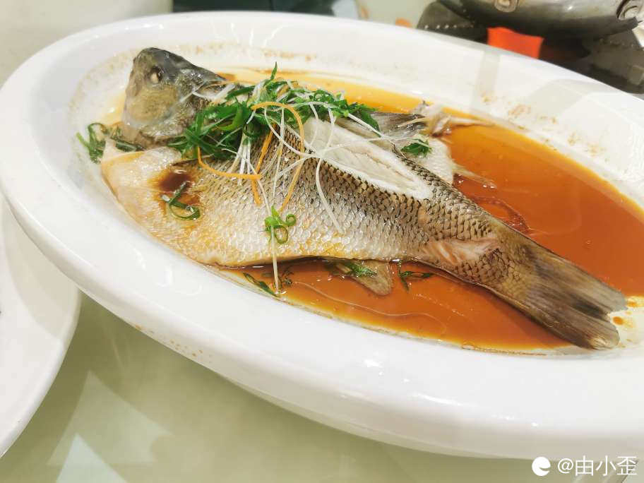 古法蒸加州鲈鱼,鱼质细腻可口,原汁原味。