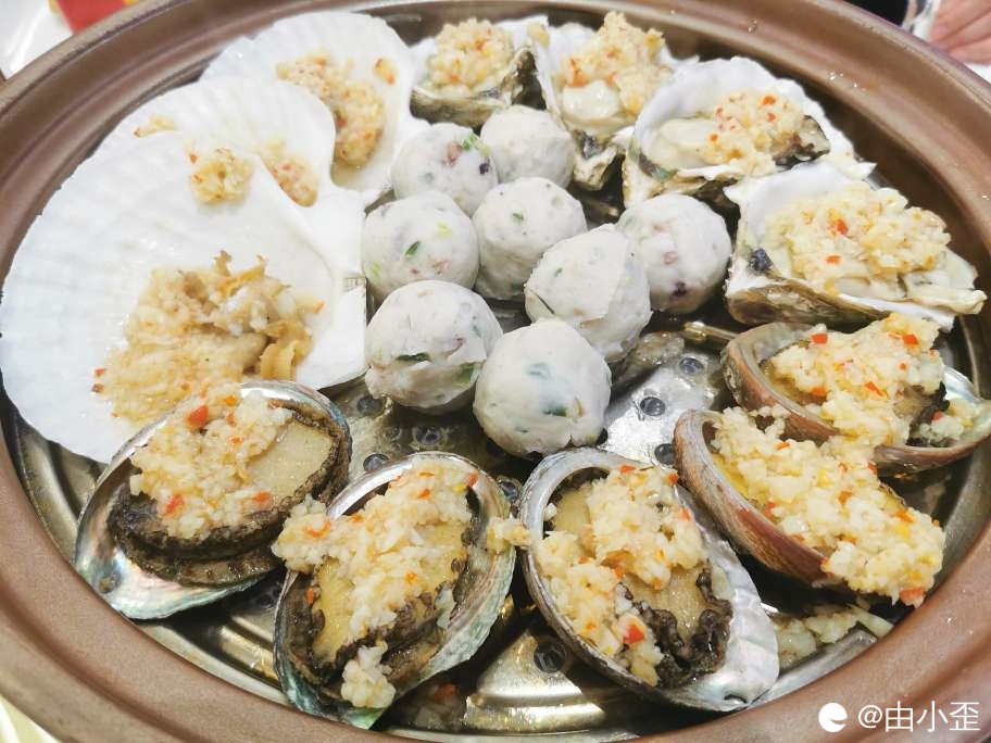 鲍鱼海鲜大蒸锅,肉丸应该是鱼丸,清淡舒服,鲍鱼和扇贝是蒜蓉味道的,很有食欲。