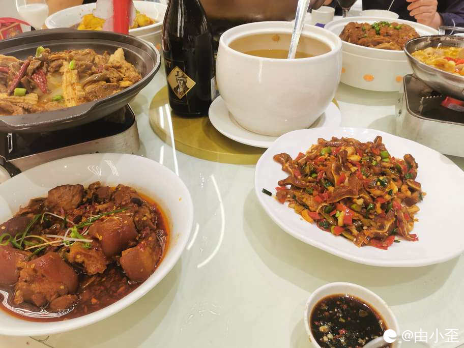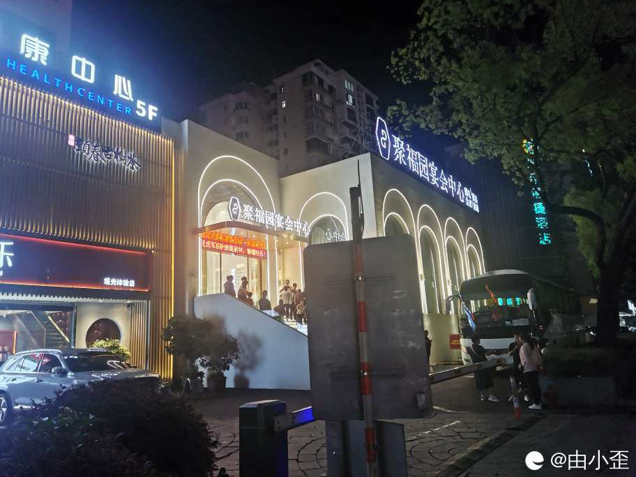 吃饱喝足扶墙走出来,华东初上,蓦然回首,聚福园宴会中心仍在灯火阑珊处。