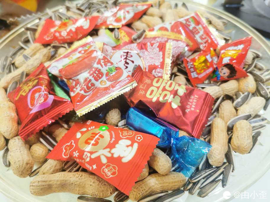 先吃一颗喜糖,磕几颗花生和瓜子。