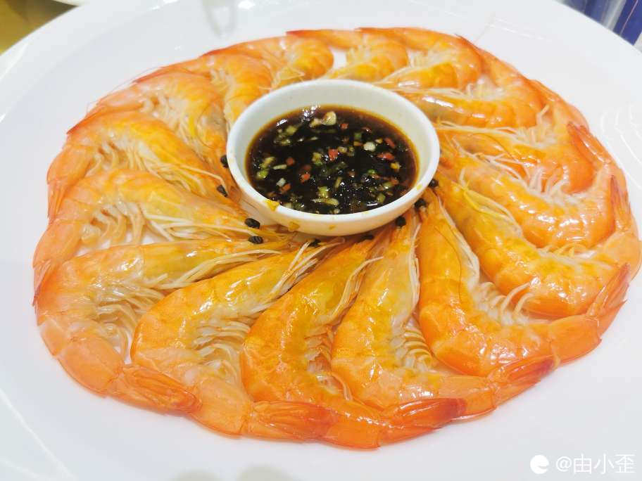 直接跳过欢天喜地欢喜卷(只顾着吃,来不及拍照),直接来到白灼深海大明虾,个头非常大,我们同桌带小朋友过来的,一下子能吃下六个,战斗力超强。