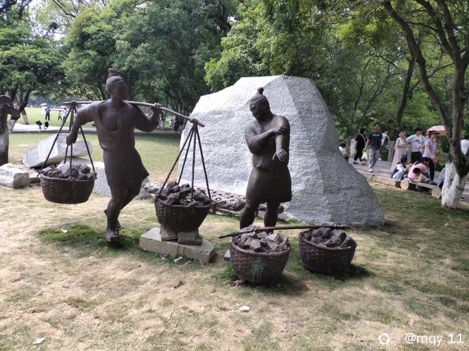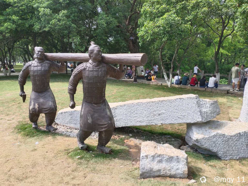 当步行在新建的草坪广场,一座座古时侯的雕像,呈现在眼前,历史的痕迹,浮现在眼前,一声声敲击,一担担挑石,一次次抬举。