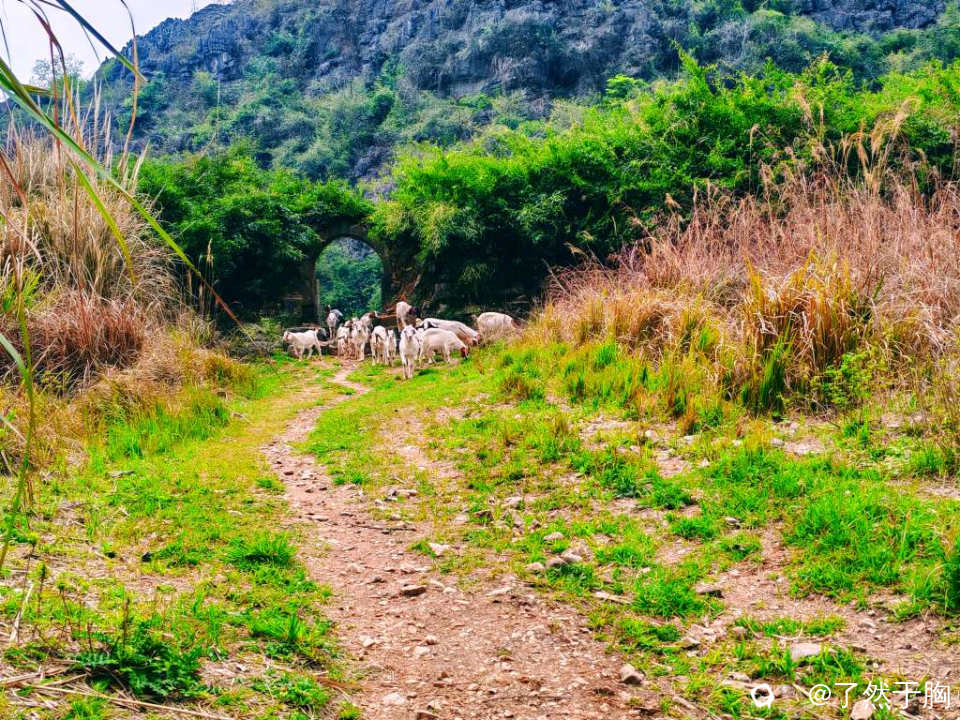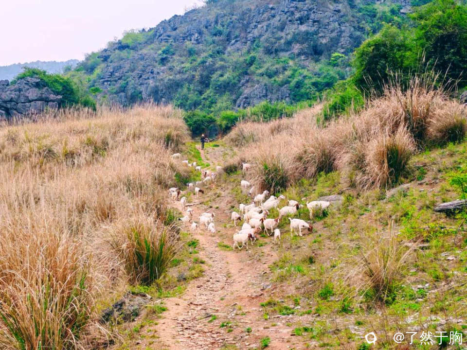于是我与羊儿们一道登岩石,过城门,穿小道,开心极了。我时而观赏羊儿们奔跳觅食,时而极目山下田园美景,耳边还有羊们咩咩的伴秦,还真是其乐融融,流连忘返呢。