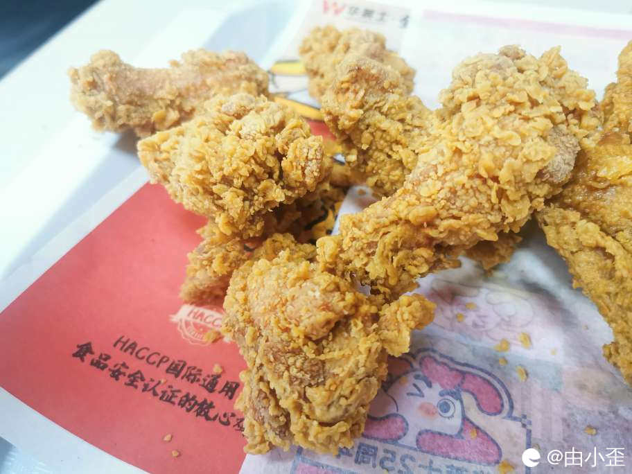 炸鸡和小鸡腿新鲜出炉,看起来就很有食欲。