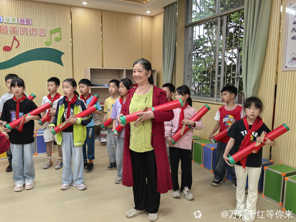 到了教室,老师们不顾路途辛苦,立马就投入到教学中,她们不厌其烦,一遍又一遍教孩子们学唱渔鼓,还帮他们编排节目,准备“六一”儿童节演出。小学三年级的学生虽然有点顽皮,但孩子们都很认真学,表现出他们对中国传统文化的热爱。看到孩子们一点点的进步,她们也感到很欣慰和骄傲。