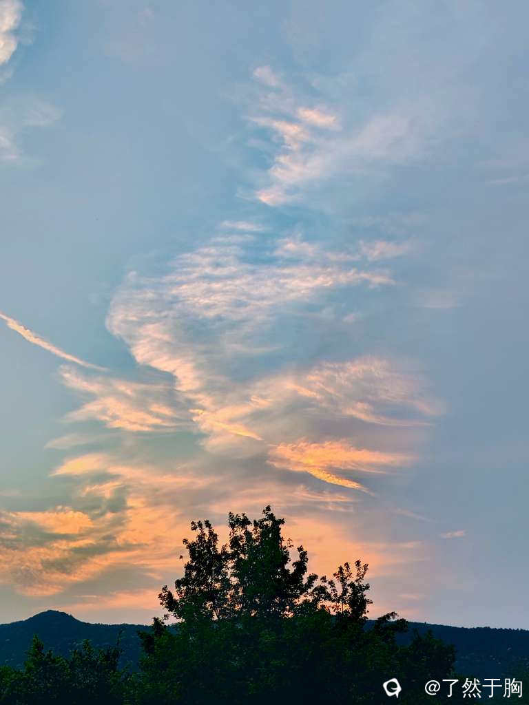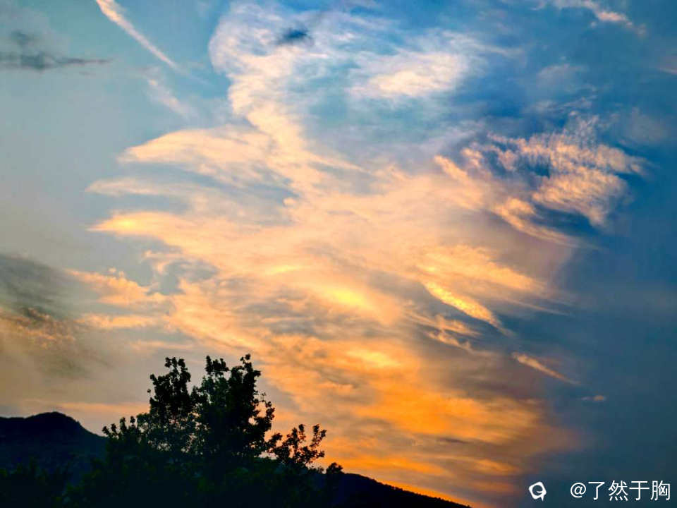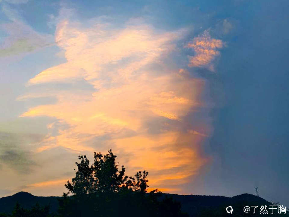 傍晚,长蛇岭上空,又出现了形状奇特的晚霞,真是美不胜收。