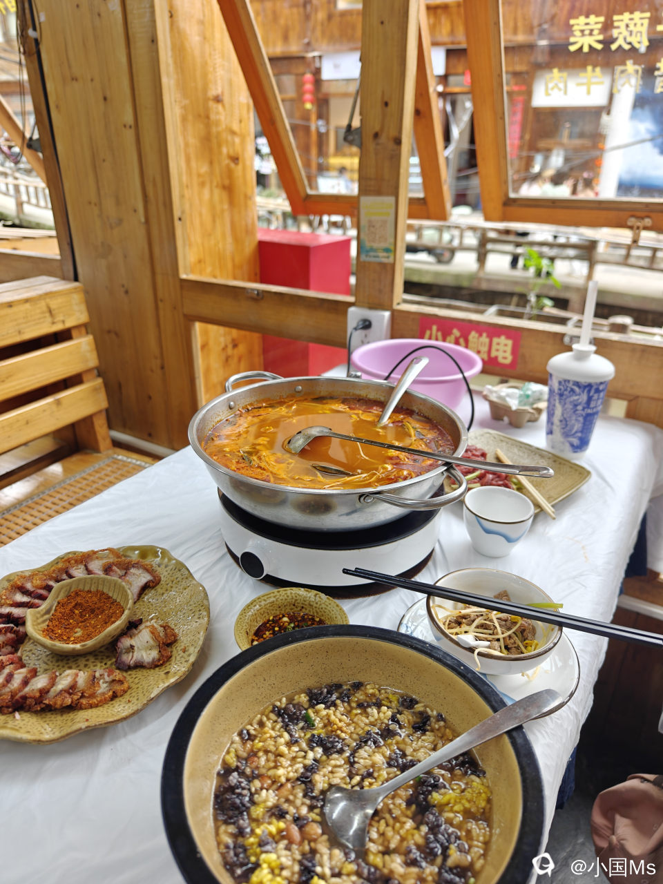 我体验了本地这些特色美食:酸汤牛肉锅、脆皮猪肉、贵州油茶、红头巾阿姨糯米饭、茶有话说奶茶~