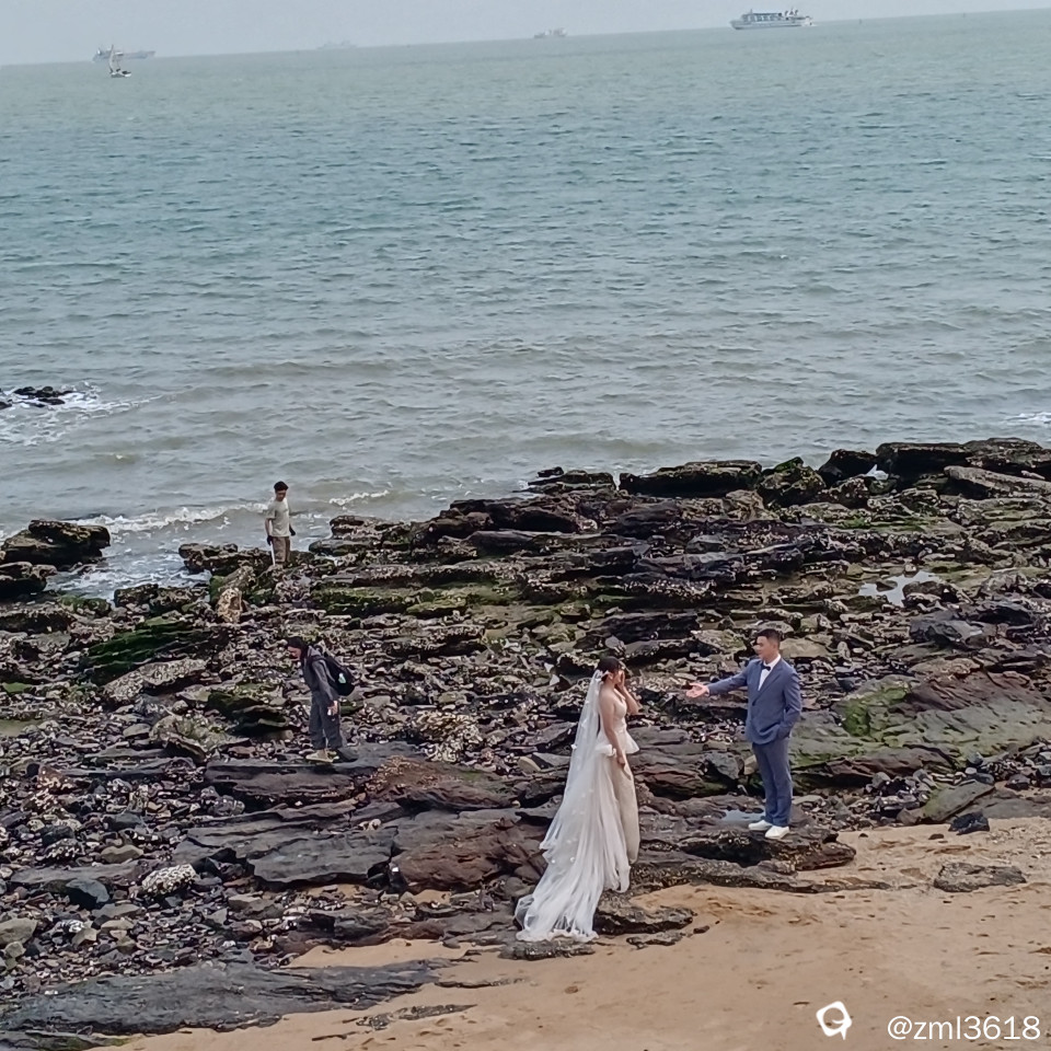 好几对新人来此,让大海见证这幸福美好的时刻。