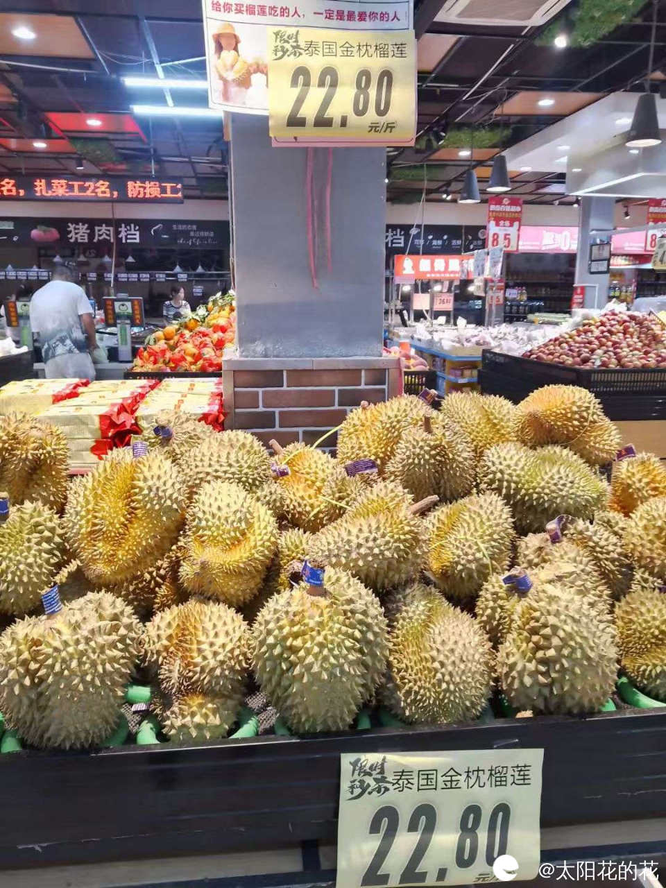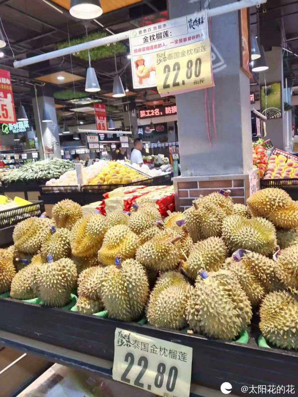 看到榴莲卖的比上次还便宜,好心动啊,就是果型不是很好,有些好像好生,有些好像好熟了,本来想买一个的,可是不太会选榴莲,挑花眼了也不知道买哪个,好纠结就干脆放弃了,感觉今年的榴莲比去年便宜,在网上看到附近另外一个超市金枕榴莲A果也才卖29.8元一斤,准备找个时间去看看……