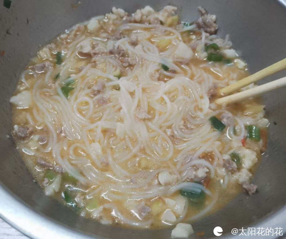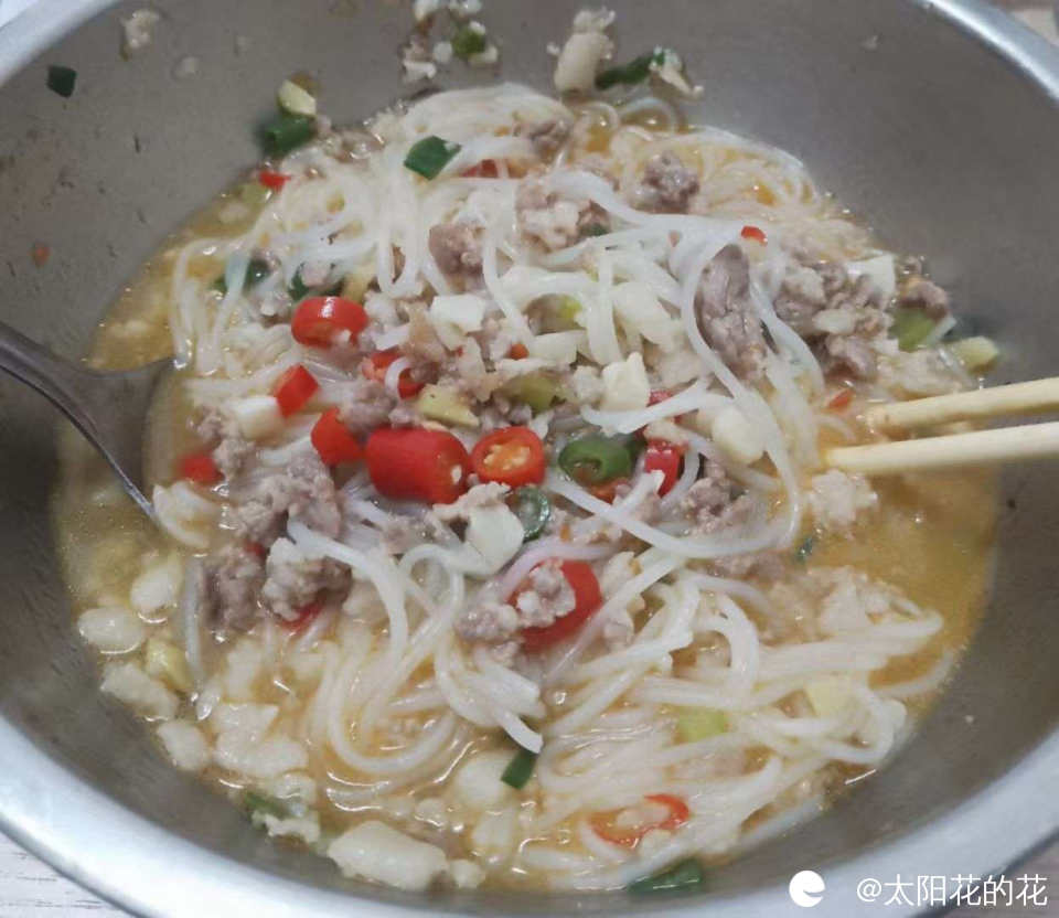 吃不到桂林的红油米粉就吃一碗自己家煮的辣椒肉末粉……